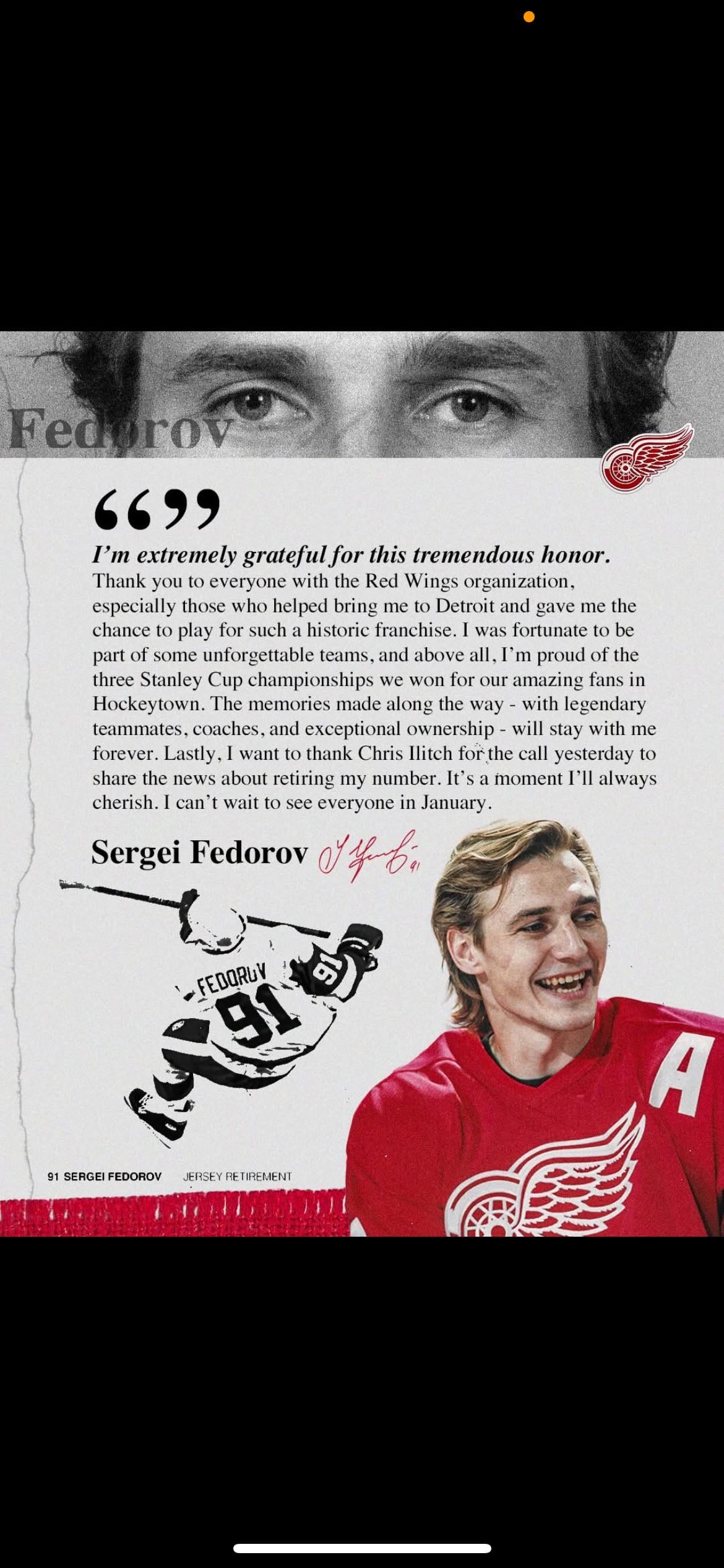 Ive been a Penguins fan since i was a little kid, but Stevie Y was always my favorite player growing up so i watched a LOT of Redwings hockey n i always felt Fedorov never got enough love. I wouldve loved to have seen him in Pittsburgh….Congrats to him, well deserved
