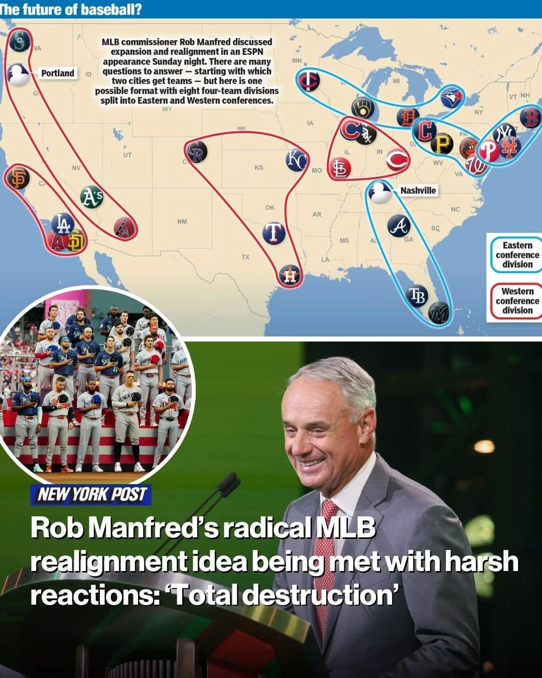 This map is just some crackpot at the New York Post’s idea— it isn’t a real proposal by Manfred or anyone