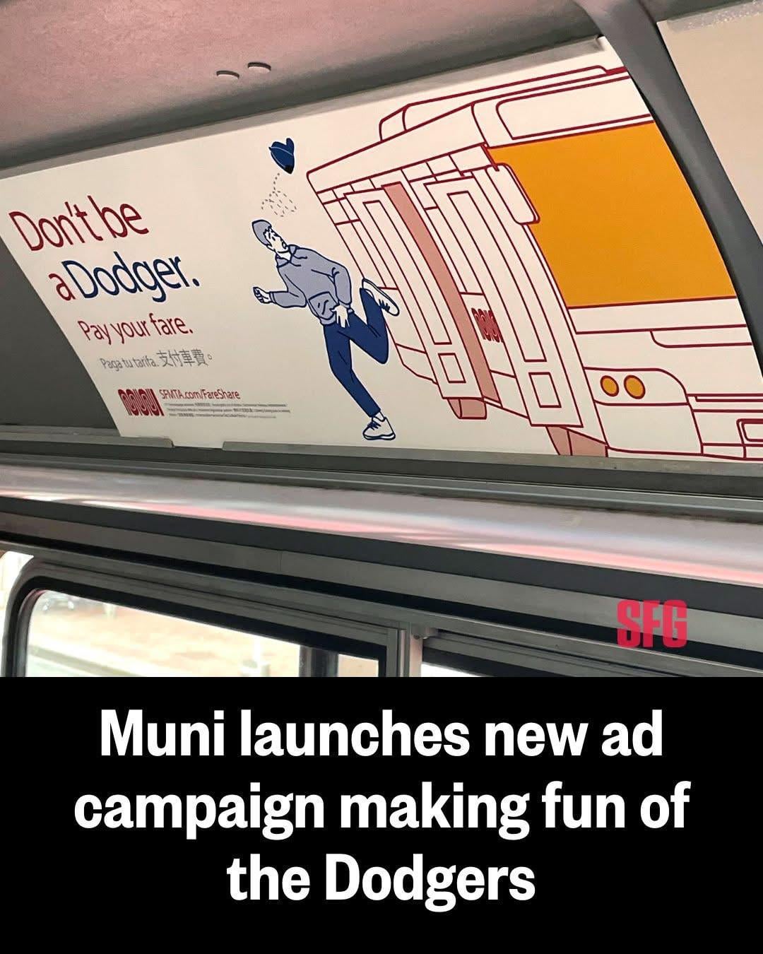 new Muni marketing 4 comments Saw one on the 36 line, already vandalized. public transit should be free https://preview.redd.it/x5i4sg36sekf1.png?width=1080&format=png&auto=webp&s=2176577a244ead13208b1de1f2950cc22cb2cab2 Making fun of the Dodgers would feel so much better if we didn’t suck so bad. Leave a ReplyYou must be logged in to post a comment.