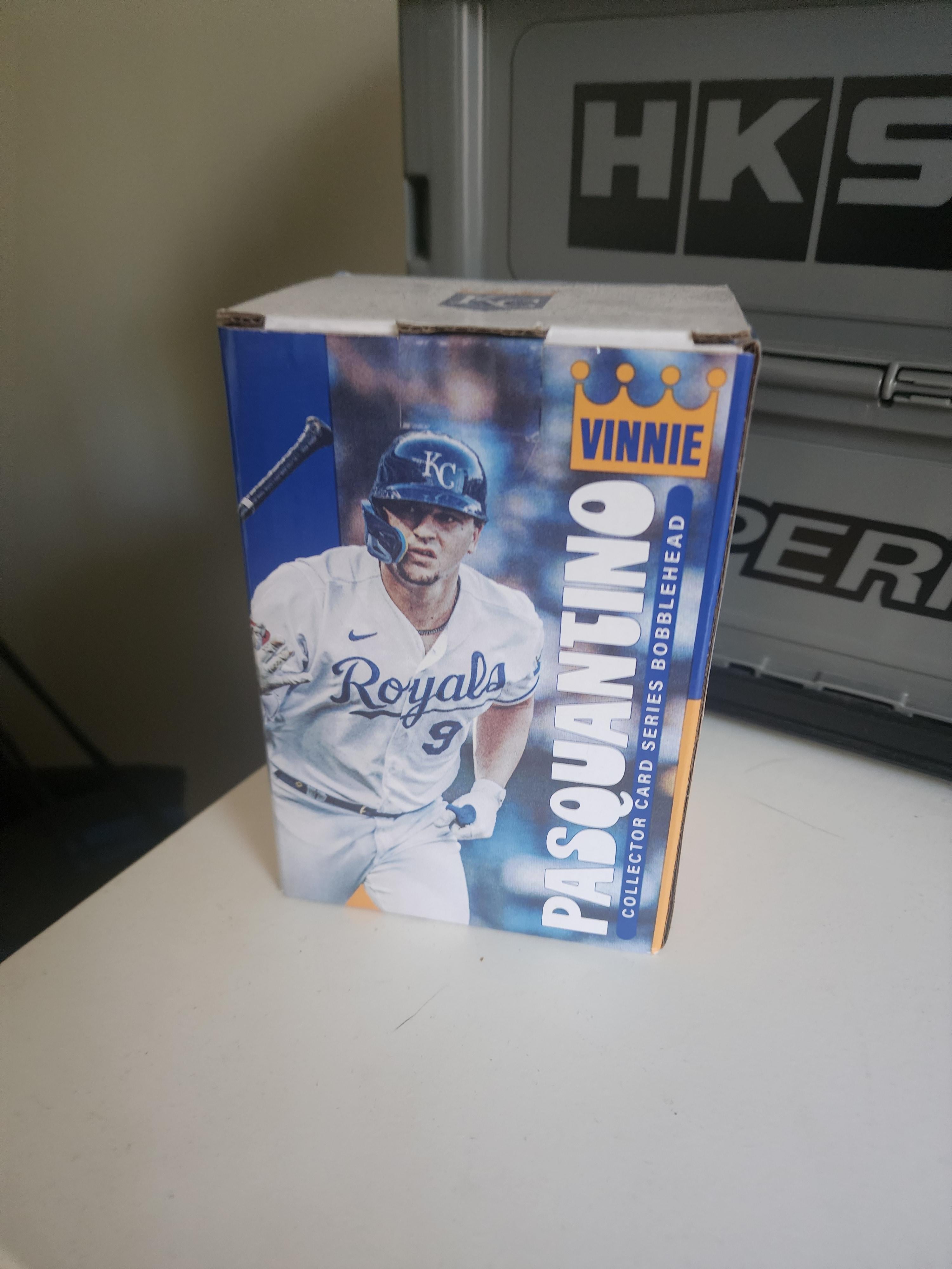 What's up Royals fans? My wife and I were in KC a while back and came to a game as I'd never been to your ballpark, and it's been a while since I've had the opportunity to watch my beloved Orioles lose a sunday game in person. It was Vinnie P bobble head day, so we were given one and I've had it since. I'm not really a collector of these, so I figured I'd come here and see if anyone that maybe missed the chance to get one that wanted it? I'm not asking anything for it monetarily, but would appreciate if you'd shoot me a few bucks for shipping, and I would be happy to send it to you! Feel free to shoot me a message if you'd like it.