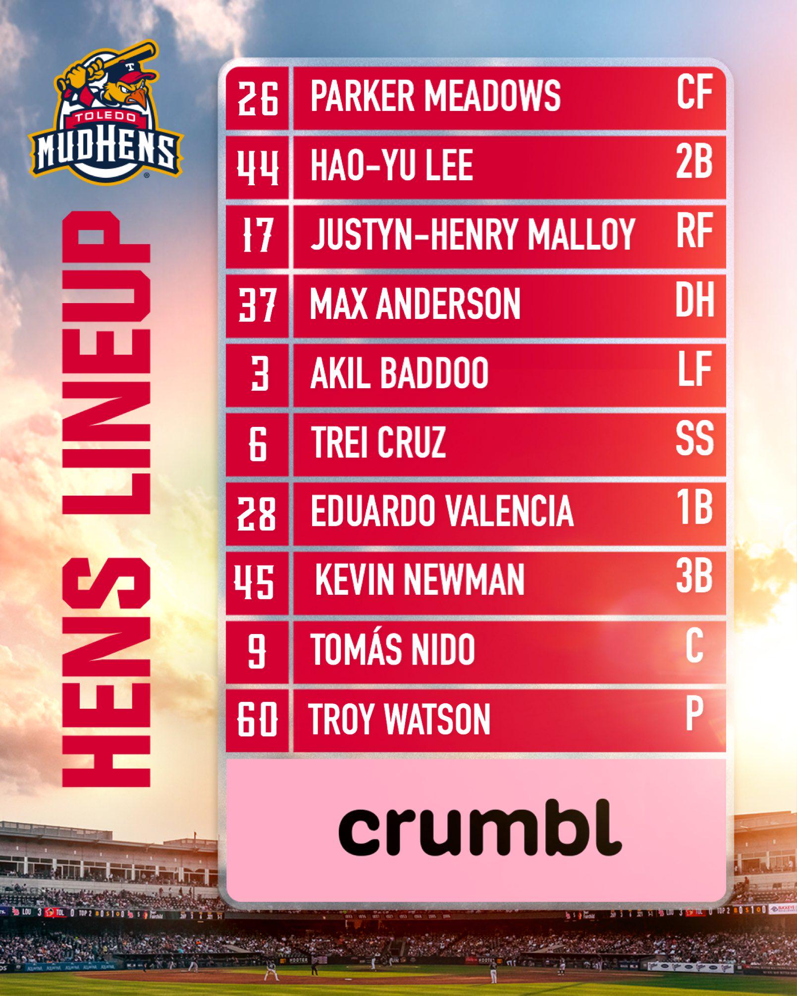 Parker Meadows in the lineup for Mud Hens tonight. 6 comments progress I sure hope he can get back to 100%. What a gift that would be for us all! Is this lineup better or worse than our 2019 opening day lineup? Yaba daba Doo!!! Already got a triple JHen I miss u Leave a ReplyYou must be logged in to post a comment.