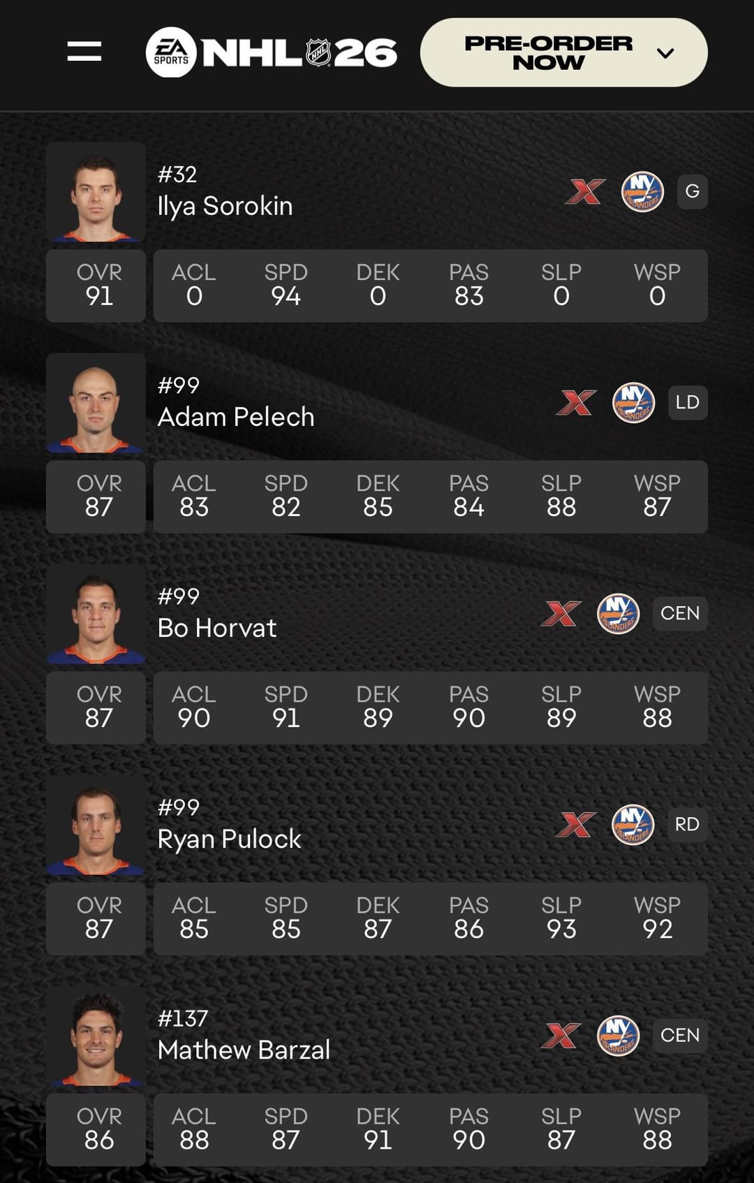 Travesty that Barzal only has 87 speed but Bo has 91. EA is a giant joke.