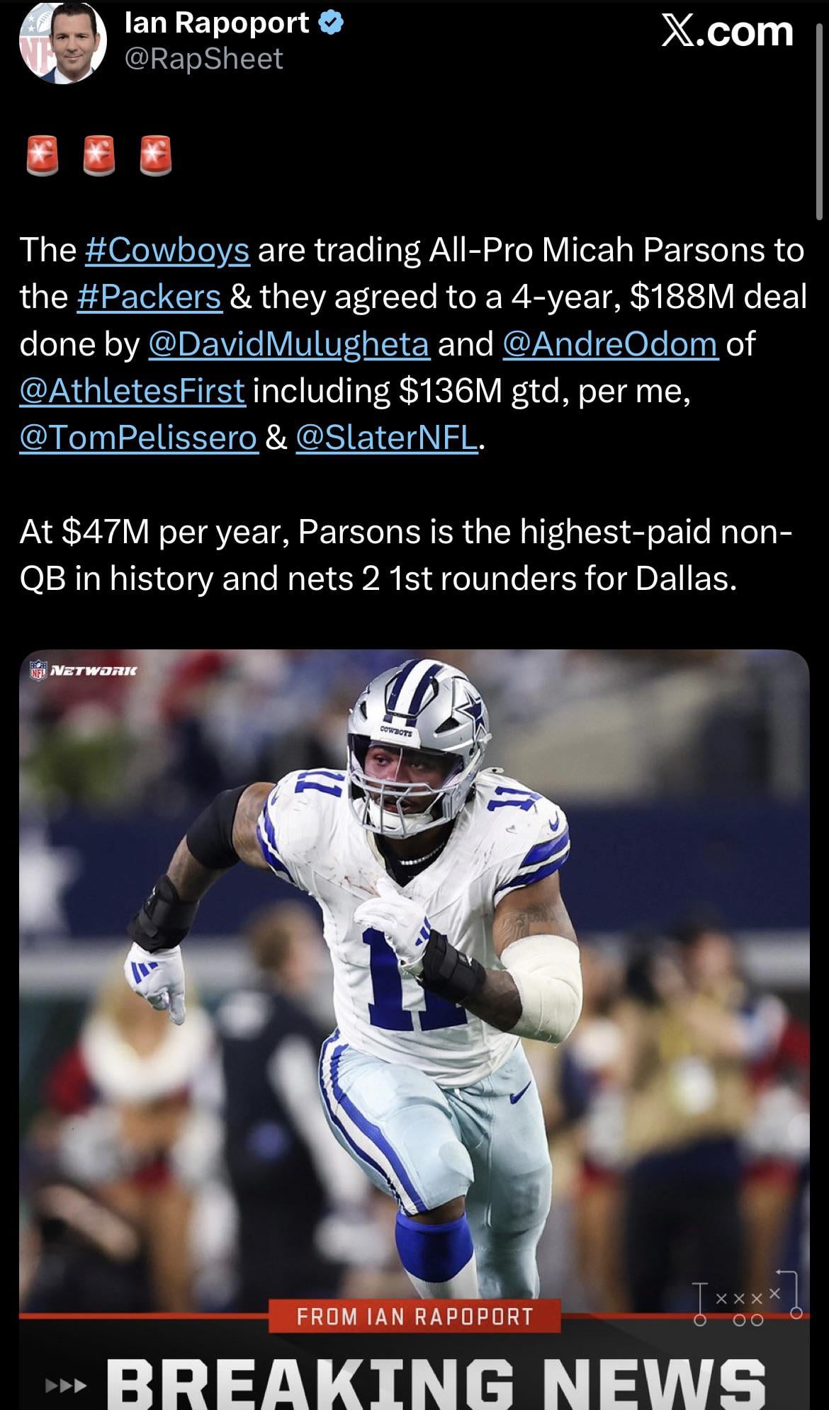 [Rapoport] Cowboys have traded Micah Parsons to Green Bay