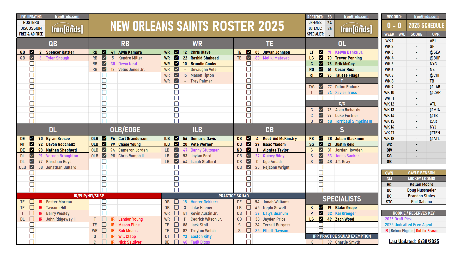 I know most people have the Saints pinned as the worst team in the league right now, maybe aside from the Browns, but I can't see that being the case with the roster.