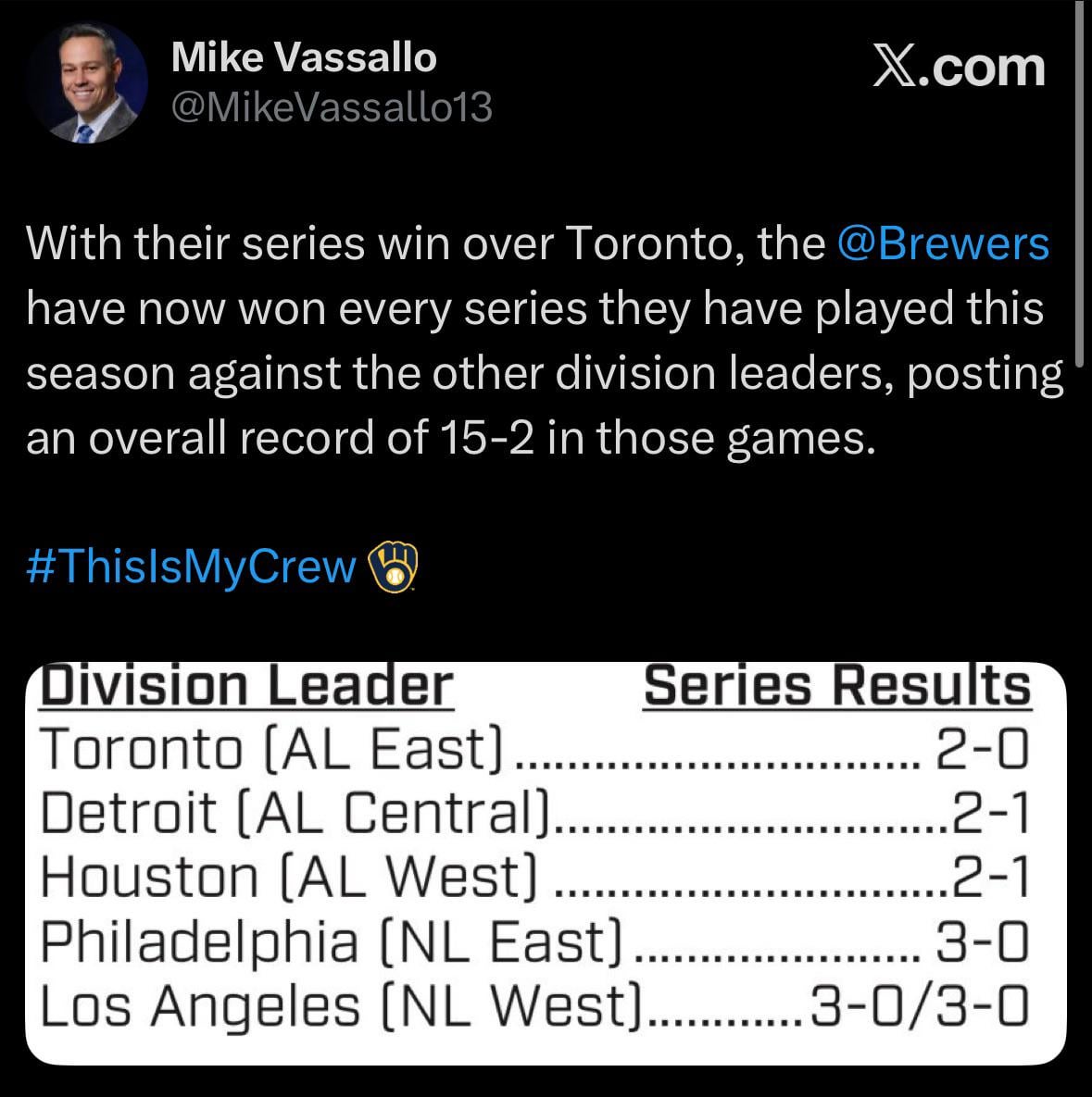 1. So you’re implying that the only team that could beat the Brewers… is the Brewers, yes?