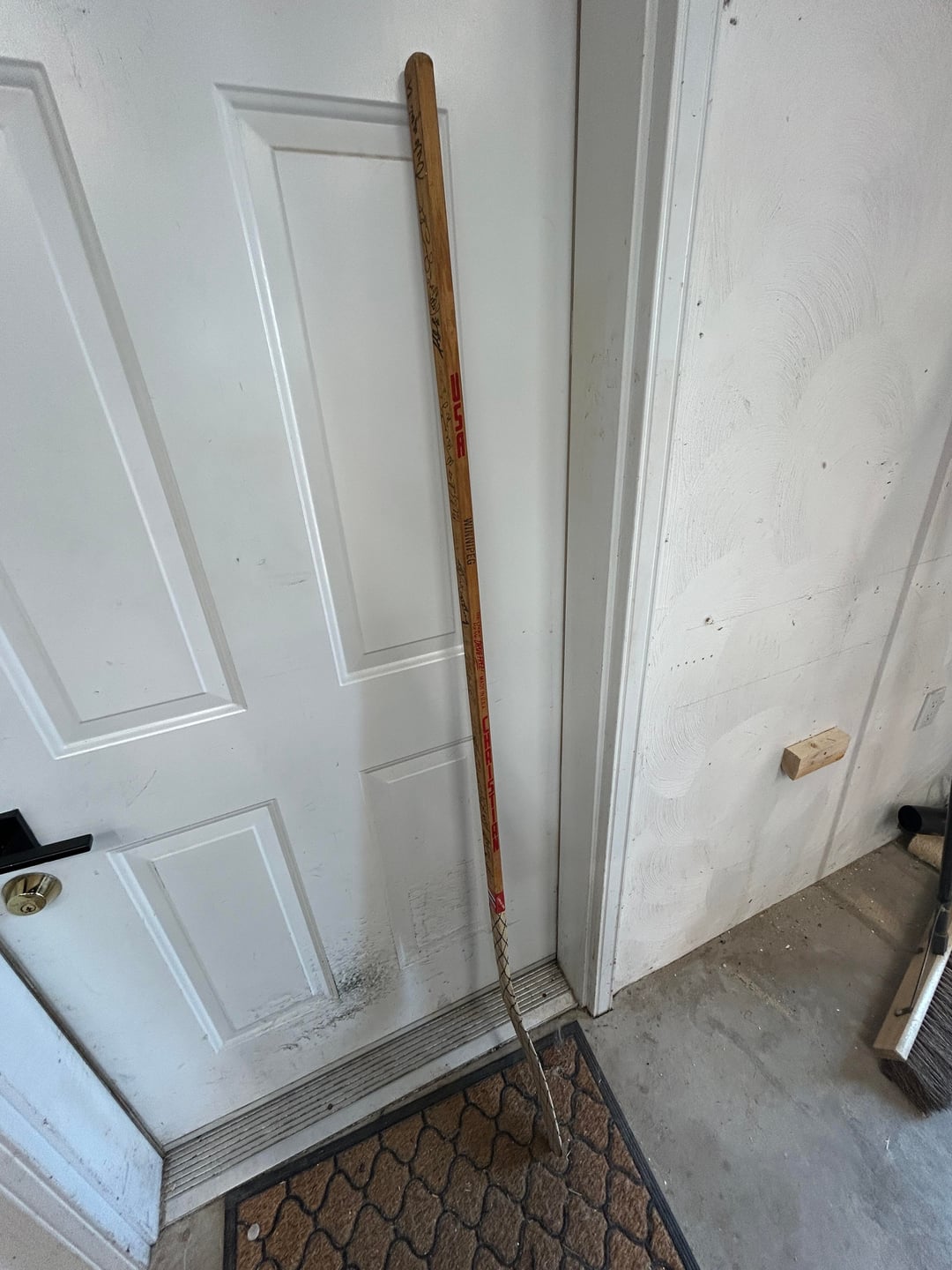 I’m located in Moncton NB. I was told this stick was won in a raffle in 92-93 at a hockey association fundraiser. It was in an attic since then so the condition isn’t great; you can feel the stick has dried out significantly.