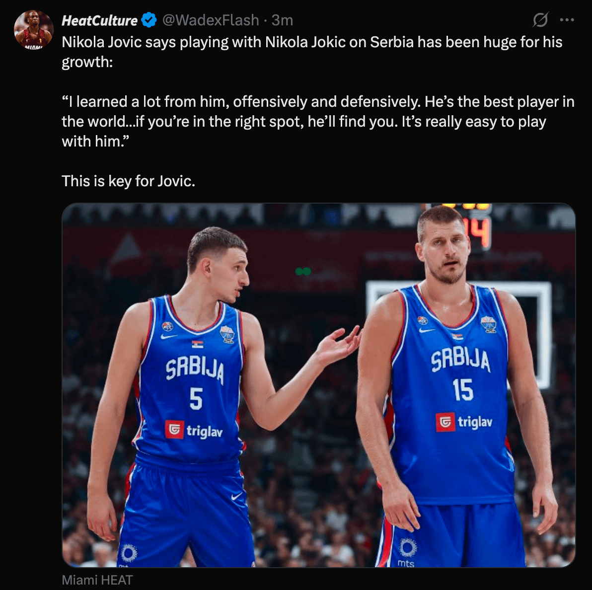 But I bet Spo is watching Serbia and continuing to learn to bring a more egalitarian style of offense to the Heat.