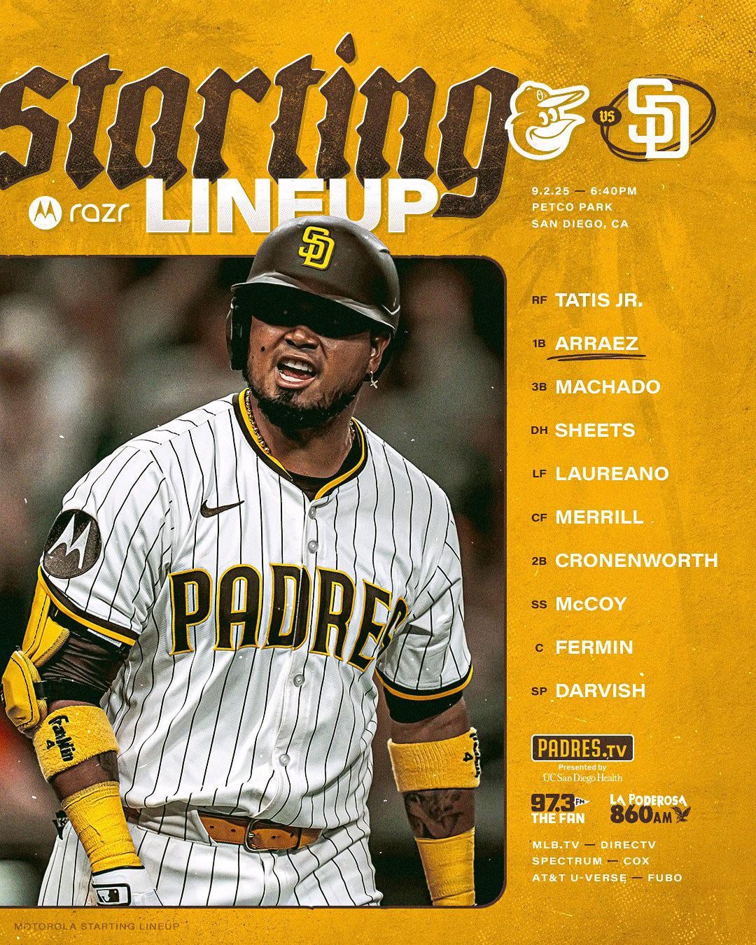 Heard Tatis say “twas nothing but a scratch”. HR coming today along with a Padre win. Darvish is gonna shove, 6 or 7 innings, with an obligatory solo HR(only run scored by them) for Power Hitting Orioles.