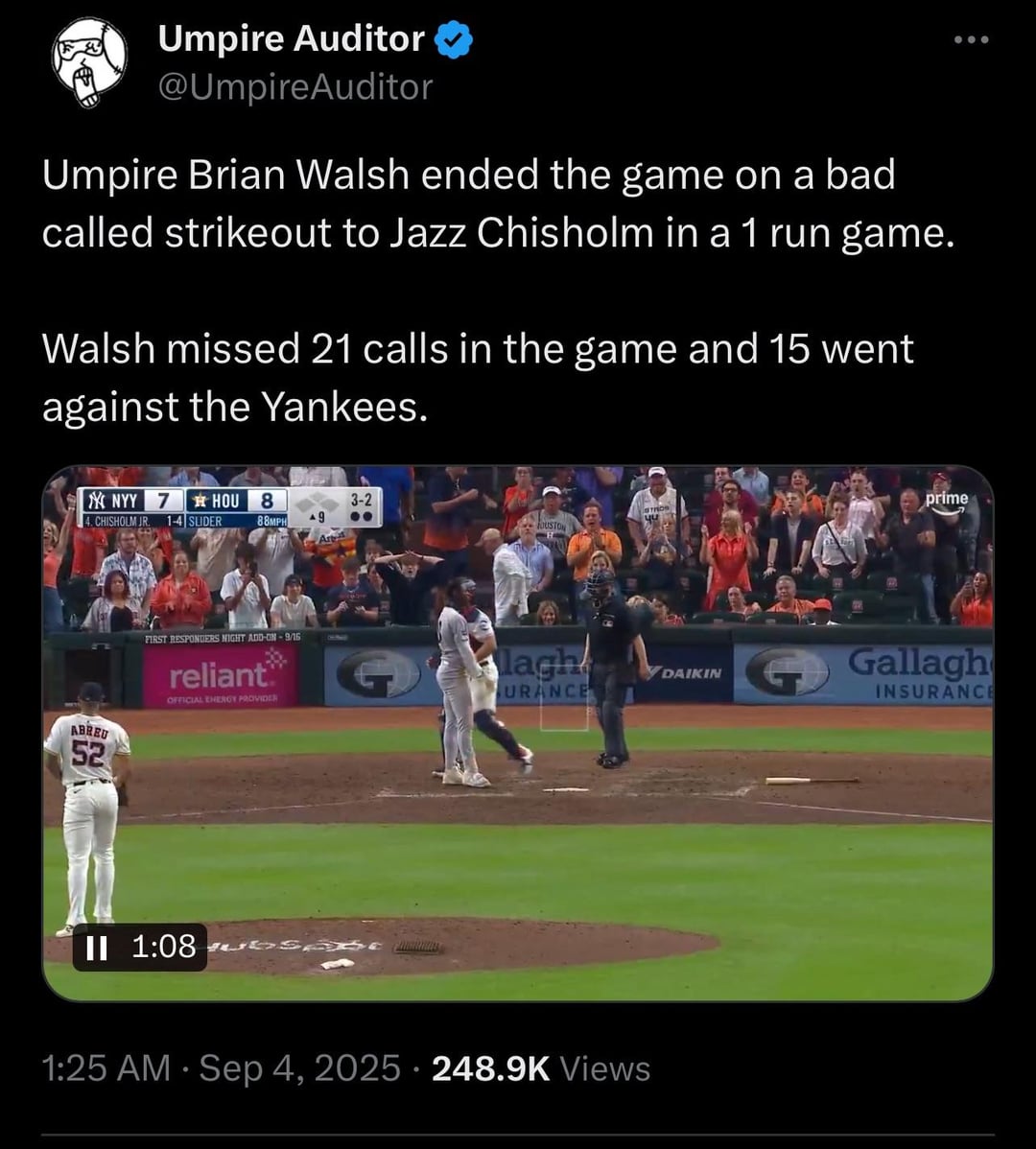 Then I want him Umping the games if we meet them in the playoffs . As a matter of fact he should ump their games from here on out…