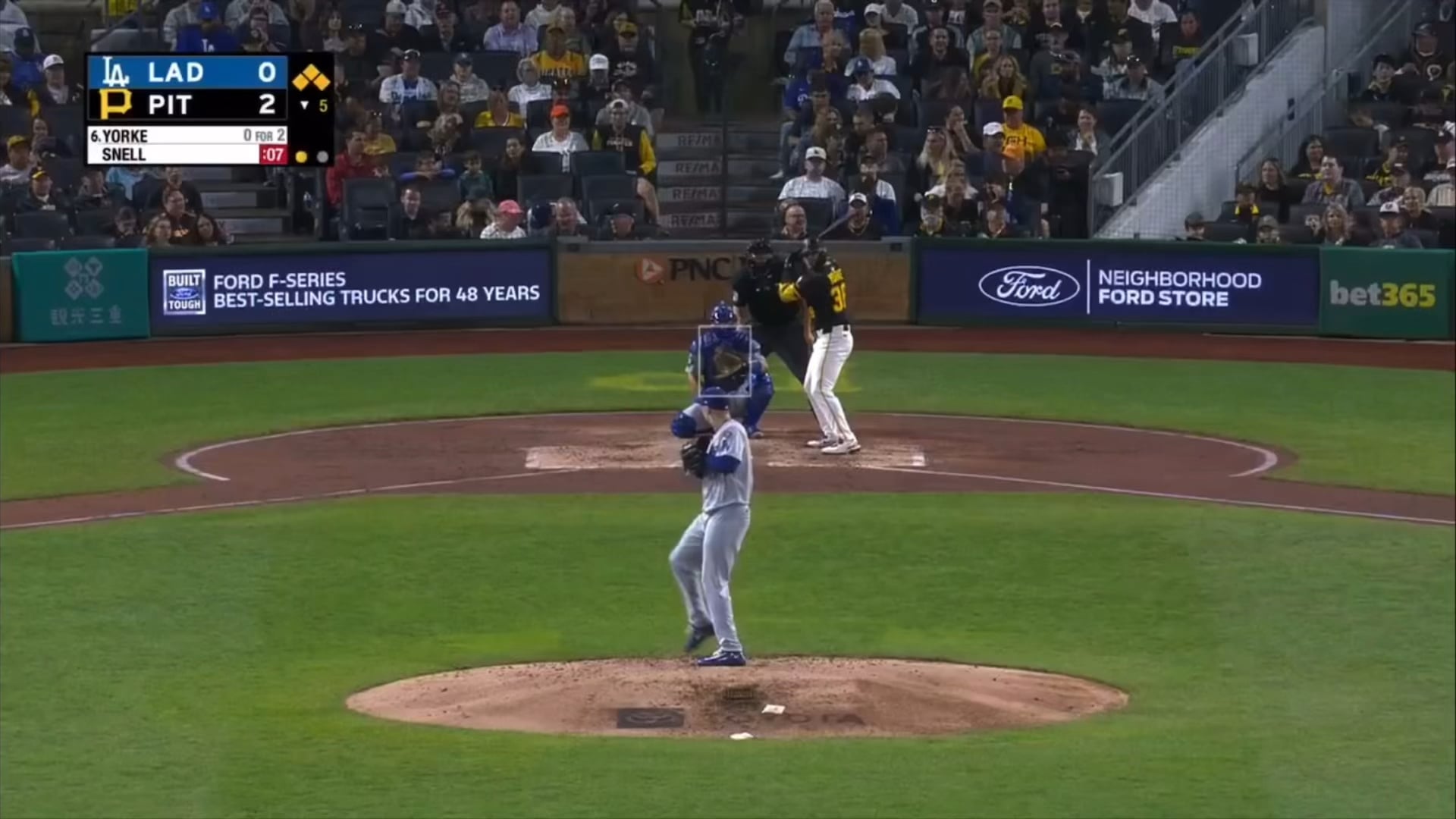 After the Dodgers intentionally walked Andrew McCutchen, Nick Yorke comes to the plate and brings in 2 runs with a double to left field.