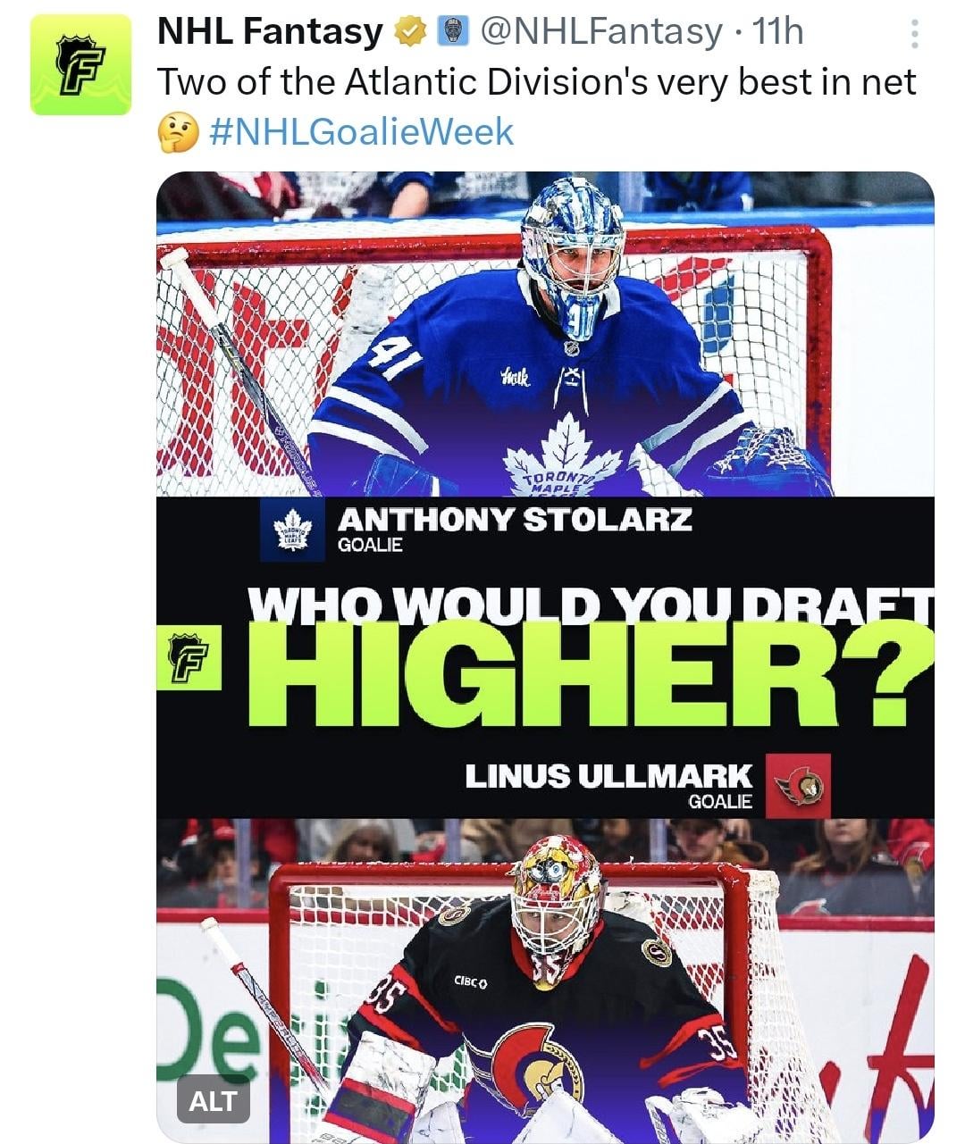 [NHL Fantasy] Ullmark vs. Stolarz – Who Got First?π