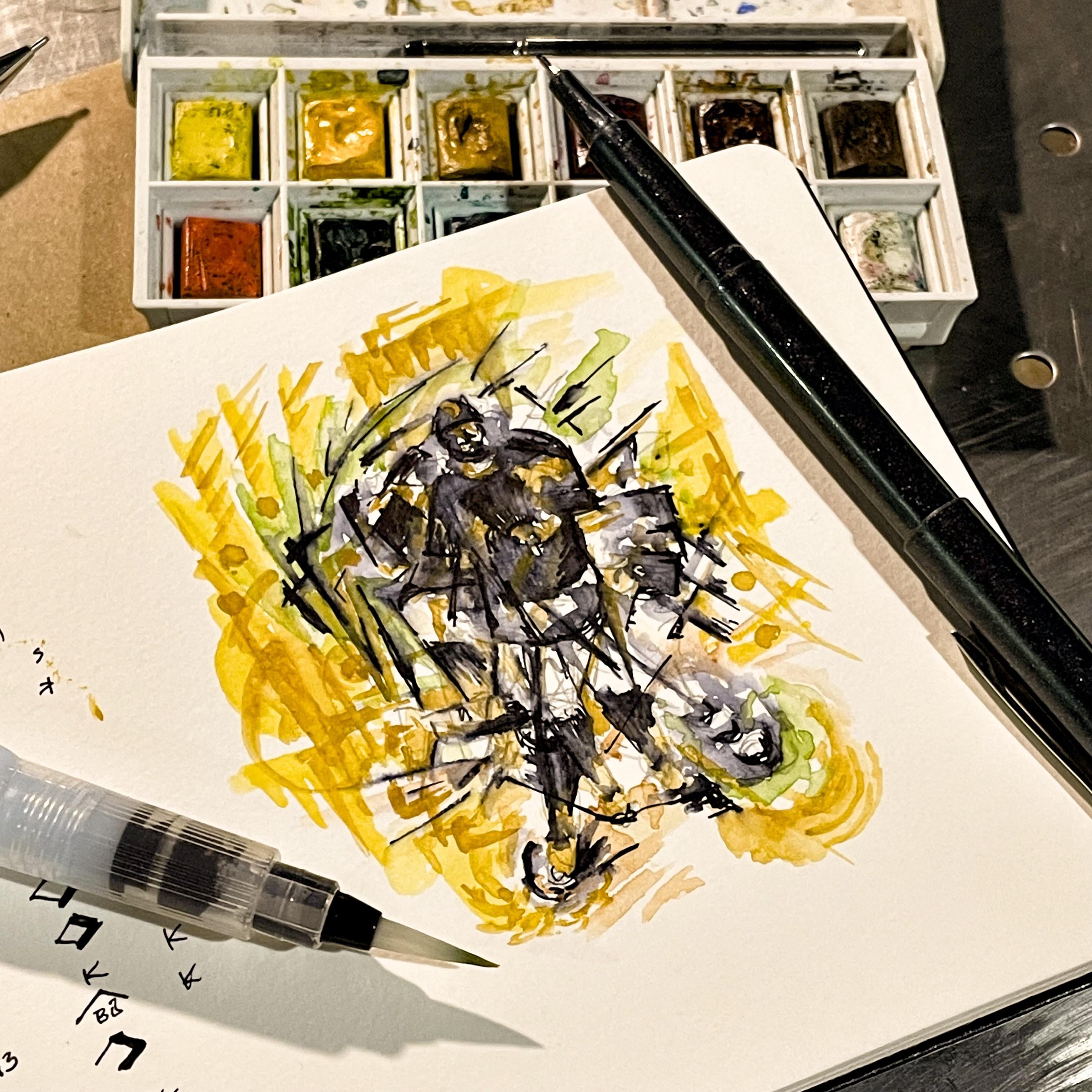 Paul Skenes abstract watercolor doodle I made at last night’s ballgame