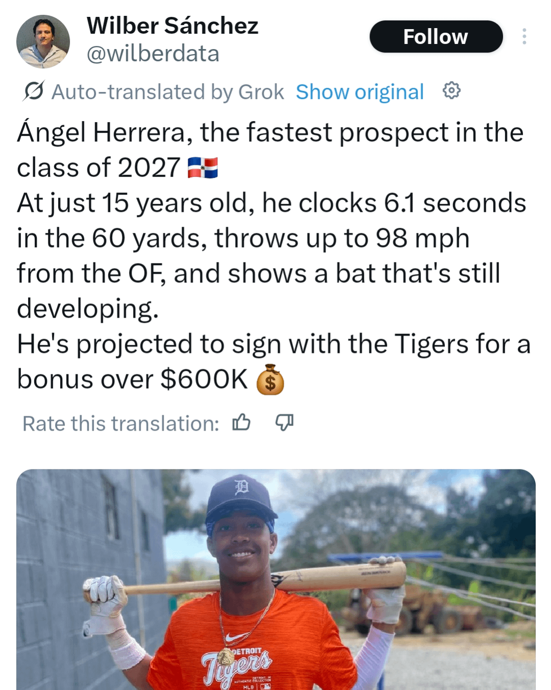 We could really use this speed and athleticism in the farm system and eventually the MLB level! 8 comments  He will be valuable for the 2035 playoff push lol Absolute lottery ticket we may never hear from again. Love were more active with these guys though 6.1 in the 60? 👀 🤩 if true Man, baseball money is so crazy. 15? lol who cares 6.1 … Underaged Usain He’s 15; should be illegal to put him in OF Leave a ReplyYou must be logged in to post a comment.