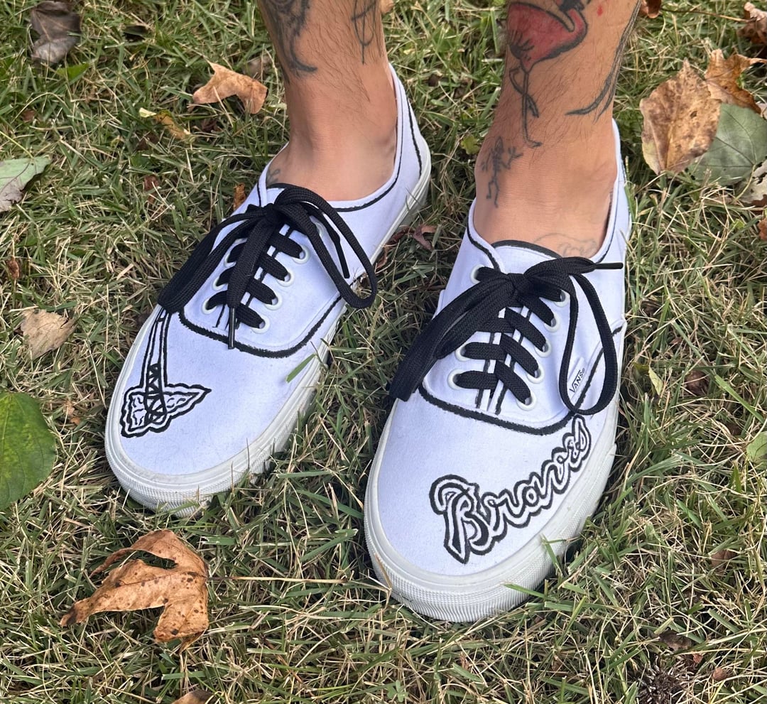 Painted my husband some Braves shoes! 3 comments Talent! Those are really nice. Great job. Those are awesome! If you put red laces in them, they’d look like baseballs. Leave a ReplyYou must be logged in to post a comment.
