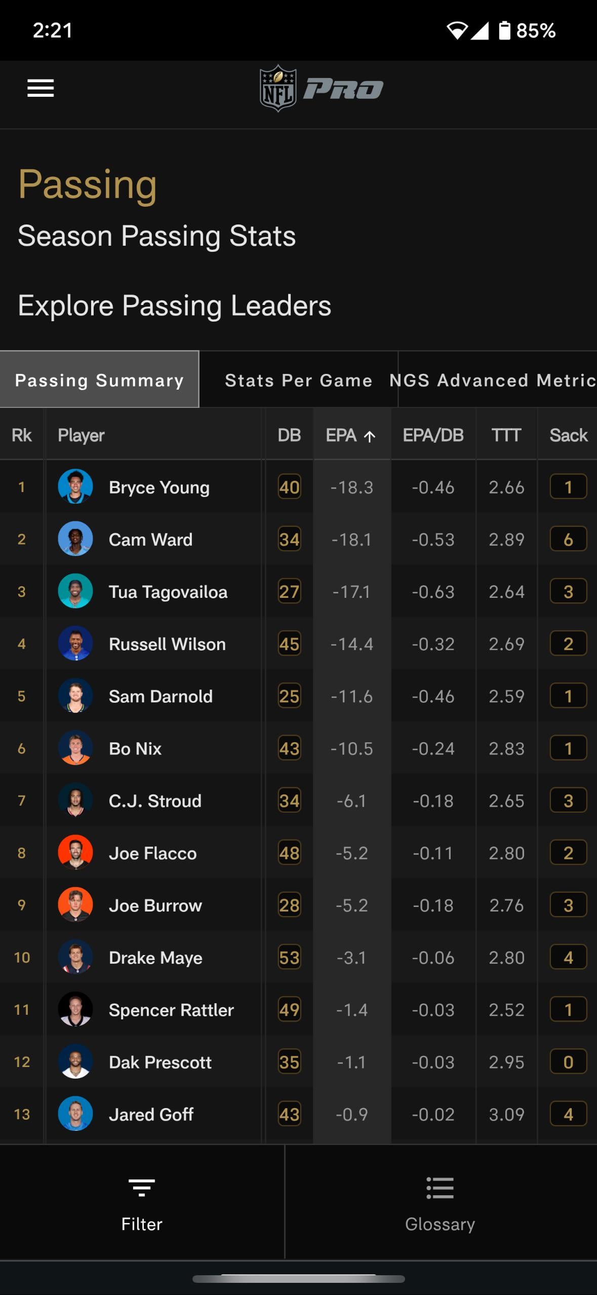 1. Bryce Young is arguably the worst starting qb in modern NFL history so not sure where you are going with this. Showing a stat that says Rattler was merely terrible instead of apocalyptic isn’t exactly a plus.