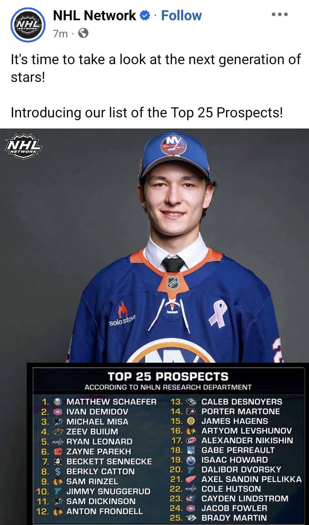 A rookie defenseman who has only played 17 junior games in over a year being the top prospect in the NHL is an insane take, especially at the D position