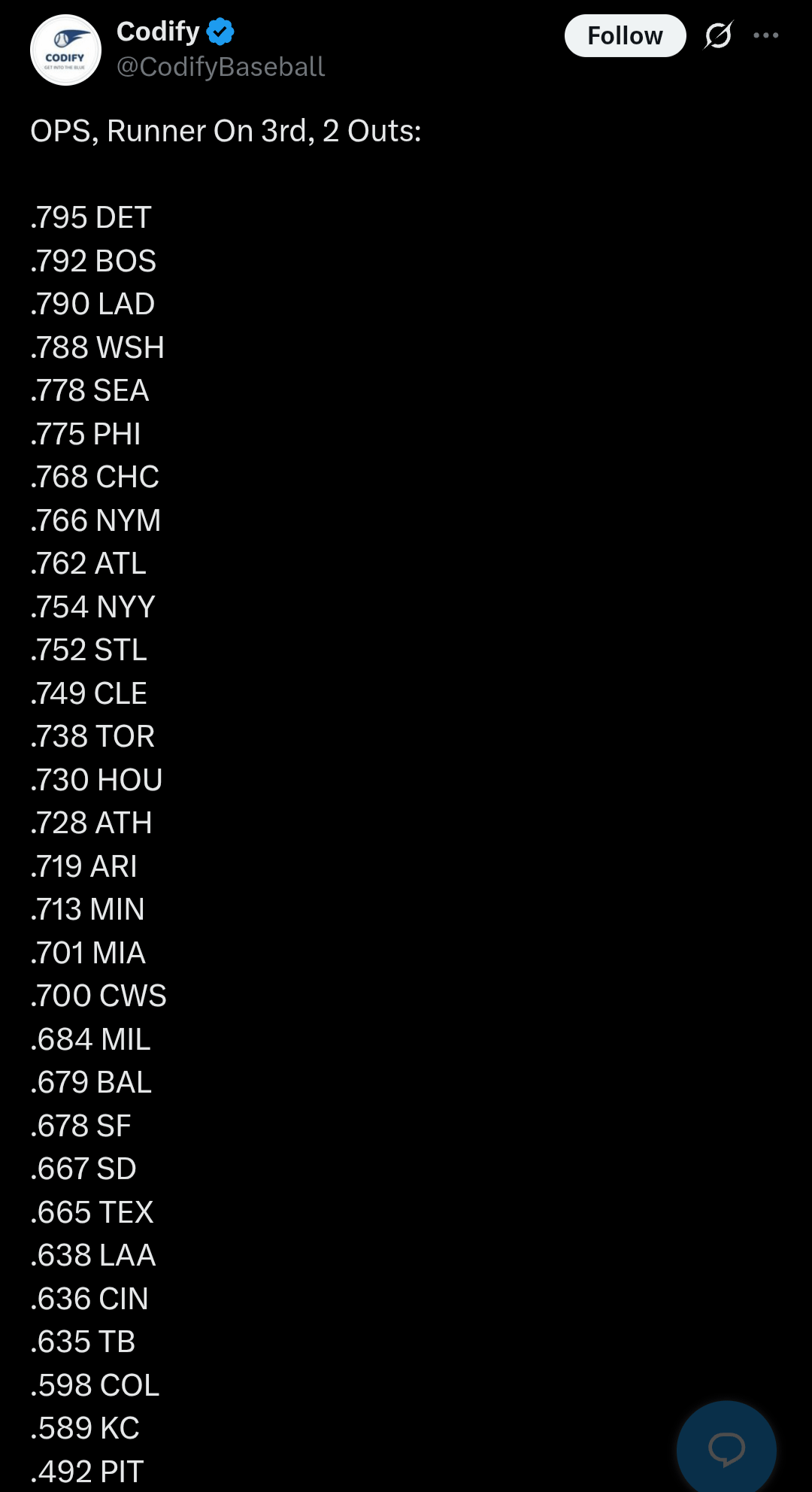 Skeptics will say this is because the tigers are bad at making productive outs and getting runners home on sacrifices before there are two outs. I say both things can be true but tigers are clearly one of the best teams with two outs somehow.