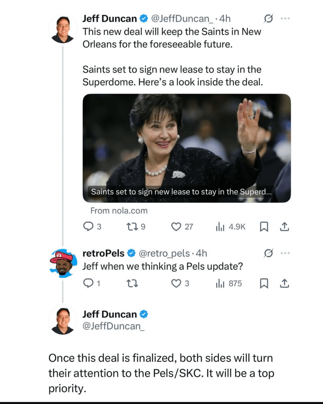 Jeff Duncan with a tidbit about the Pelicans future status in the city
