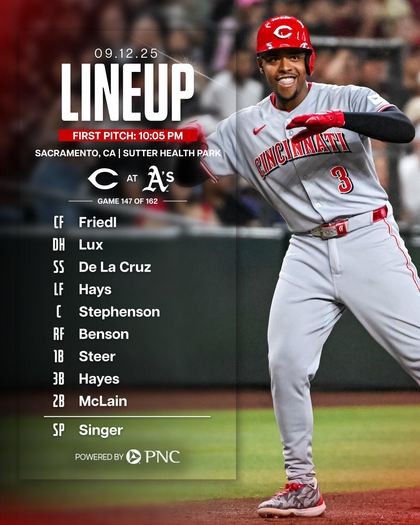 Reds lineup – Friday 9/12/25 4 comments Love seeing Benson’s name in a lineup again. Glad he’s okay after that crash into the wall at Petco Will benson ❤️ No sal 😡 Glad Big Will is okay! Hope he kills it! Thrilled to see Will in there, don’t love Marte not starting. Leave a ReplyYou must be logged in to post a comment.