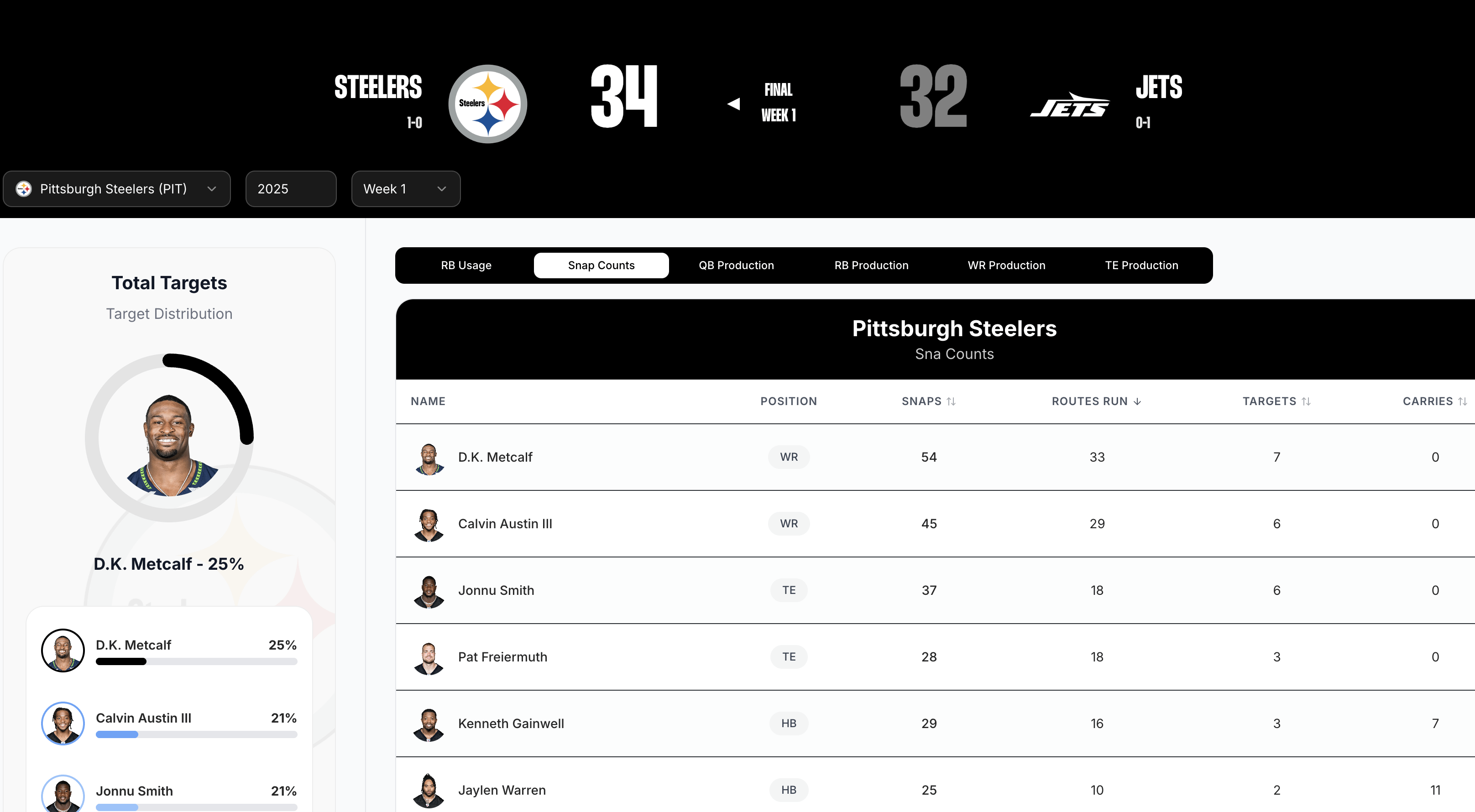 I'm typically a pretty cynical Stillers fan, but this site I found gives me a glimmer of hope for us and Calvin specifically. It breaks down snap counts and routes run in each game and there's no question Calvin was the #2 with DK. I liked him coming out of Memphis a couple years back, and if the o-line can keep Rodgers upright, I'm kinda feeling like Austin could break out. Am I being too hopeful?