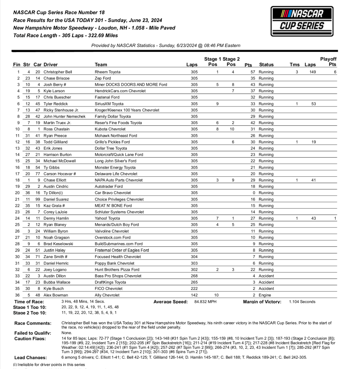 Bristol #2 2025 NASCAR Total Speed Rankings NASCAR 2025 Season To Date Total Speed Rankings – Heading To New Hampshire