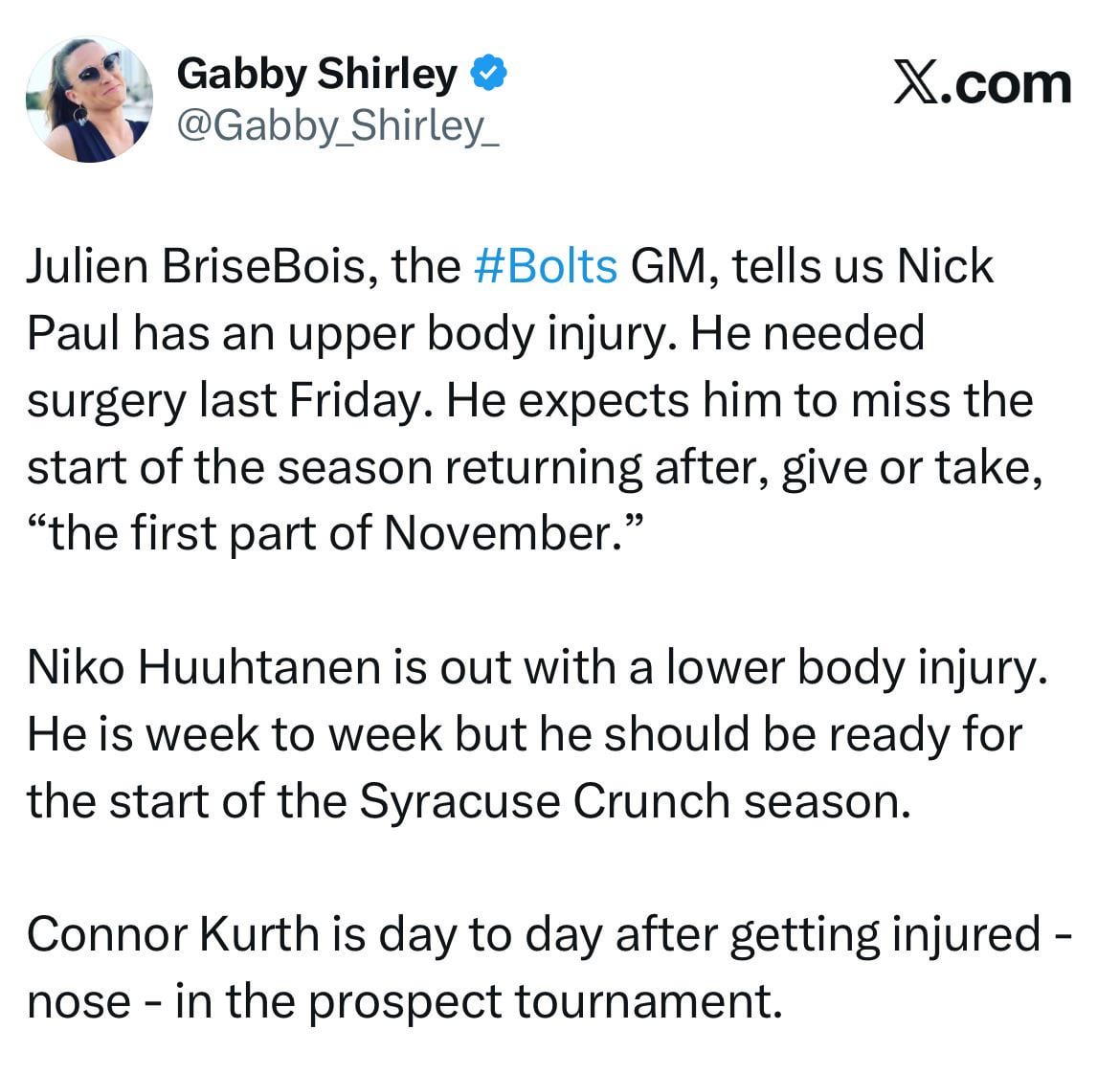 Not sure the injury did not just happen. He has been working out in Brandon facility as what someone mentioned to me.