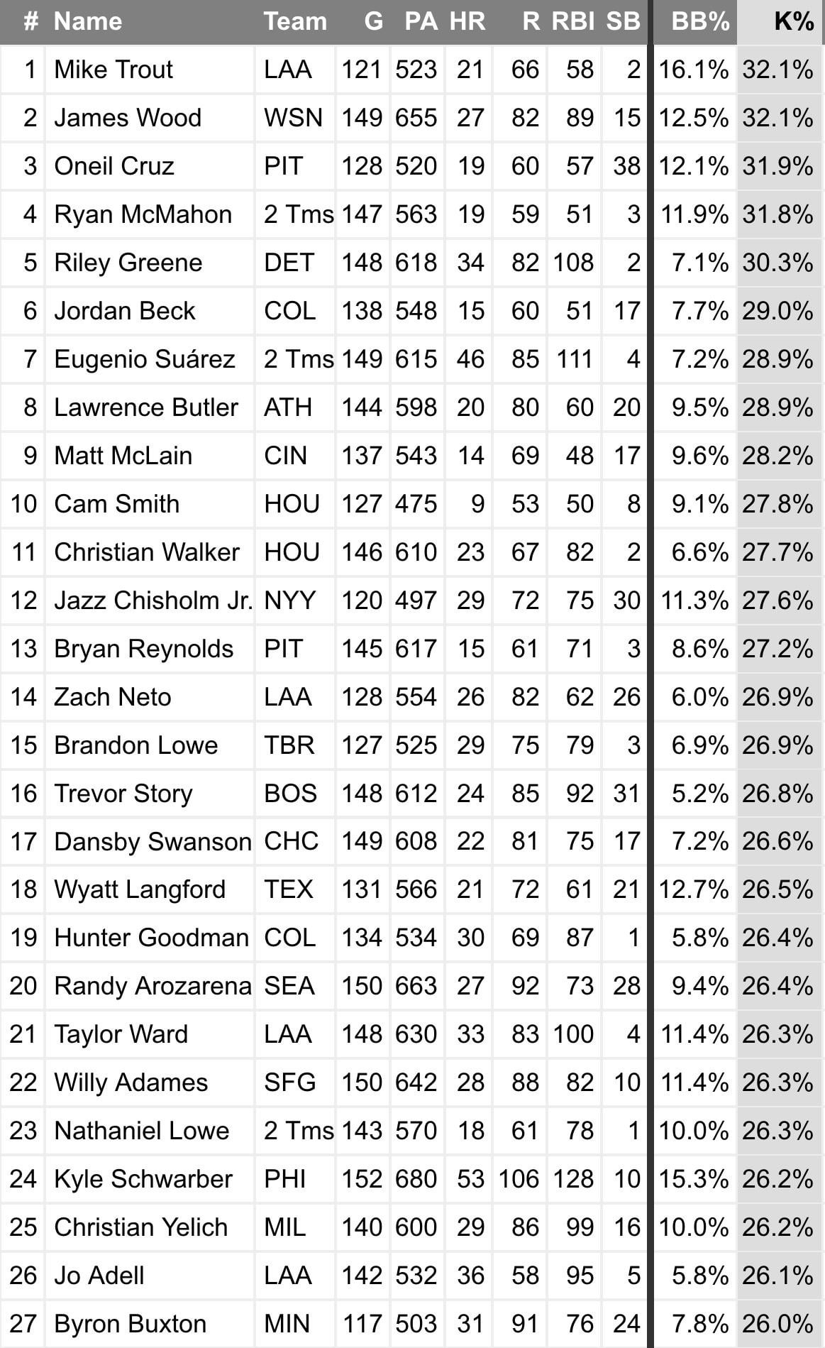 Anyone who has been paying attention has seen Mike’s K% climbing even in recent years before he got hurt. This is no surprise.