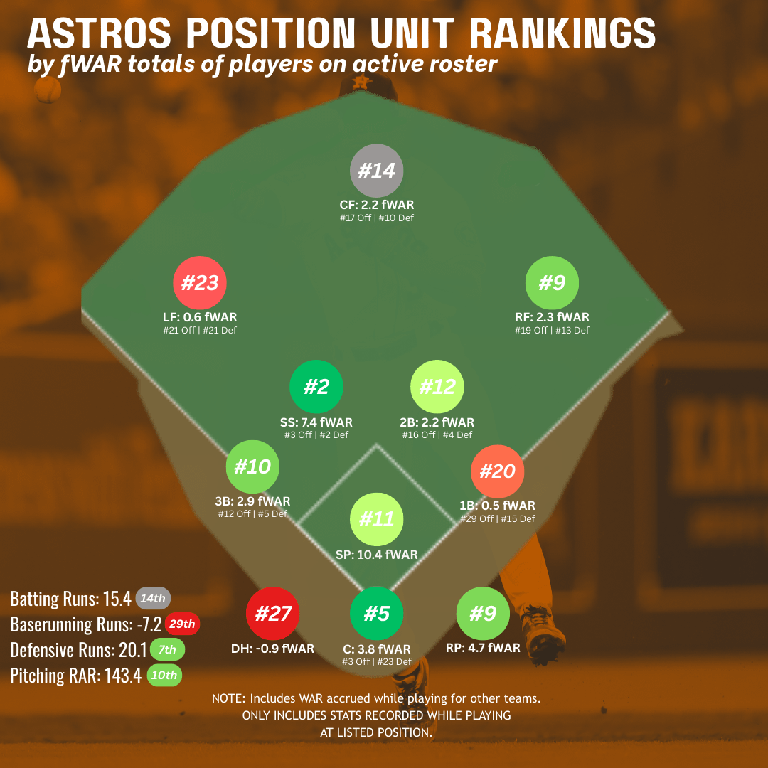 Astros vs Mariners: 28 man roster comparison and position unit rankings by fWAR