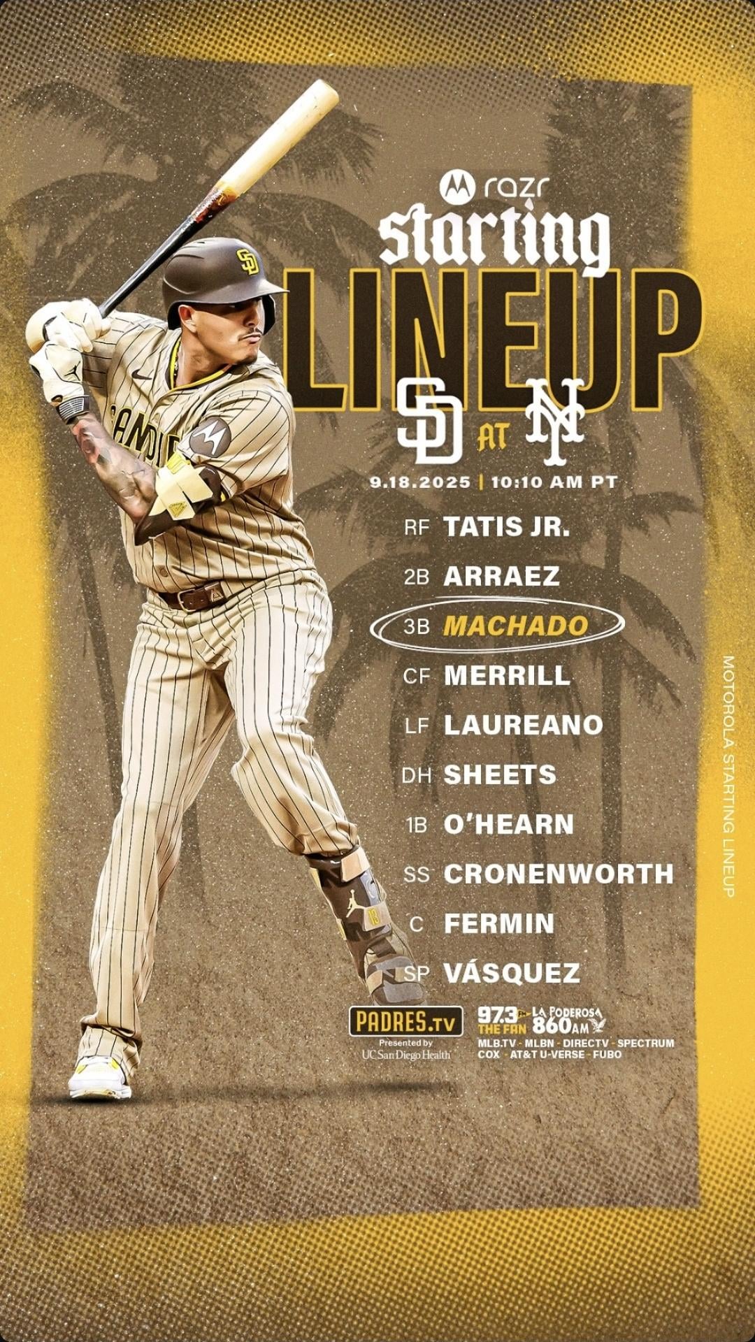 [Padres] Rise and shine☀️ 7 comments Having morning baseball makes me feel like I stayed home “sick” from school and I’m just waiting for Price is Right to start. I heart this lineup this guy Tong is a top prospect for a reason, dont let up boys, keep the pressure up Love this lineup. I’d like to see Merrill get some more time batting 2nd though. Is it okay to day drink if the Padres game starts at 10?  LFGSD ⬆️🤎💛 Let’s start getting into playoff mode. 🙌🏽 Man with this lineup how the fuck we only get 1 sorry ass run Leave a ReplyYou must be logged in to post a comment.