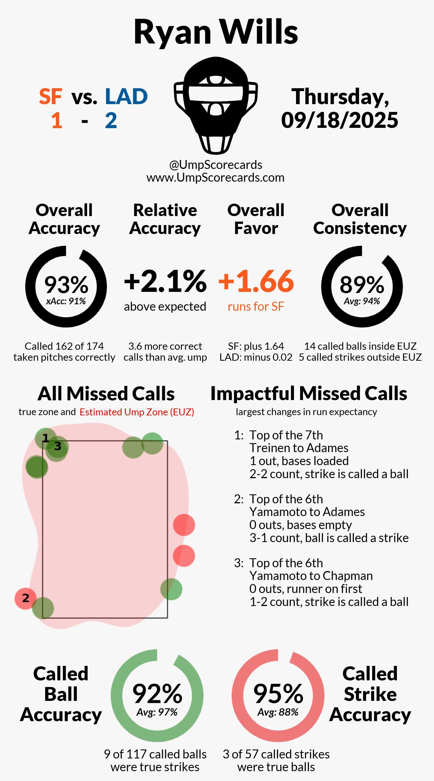 Ryan Wills’ umpire scorecard from last night’s Giants-Dodgers game