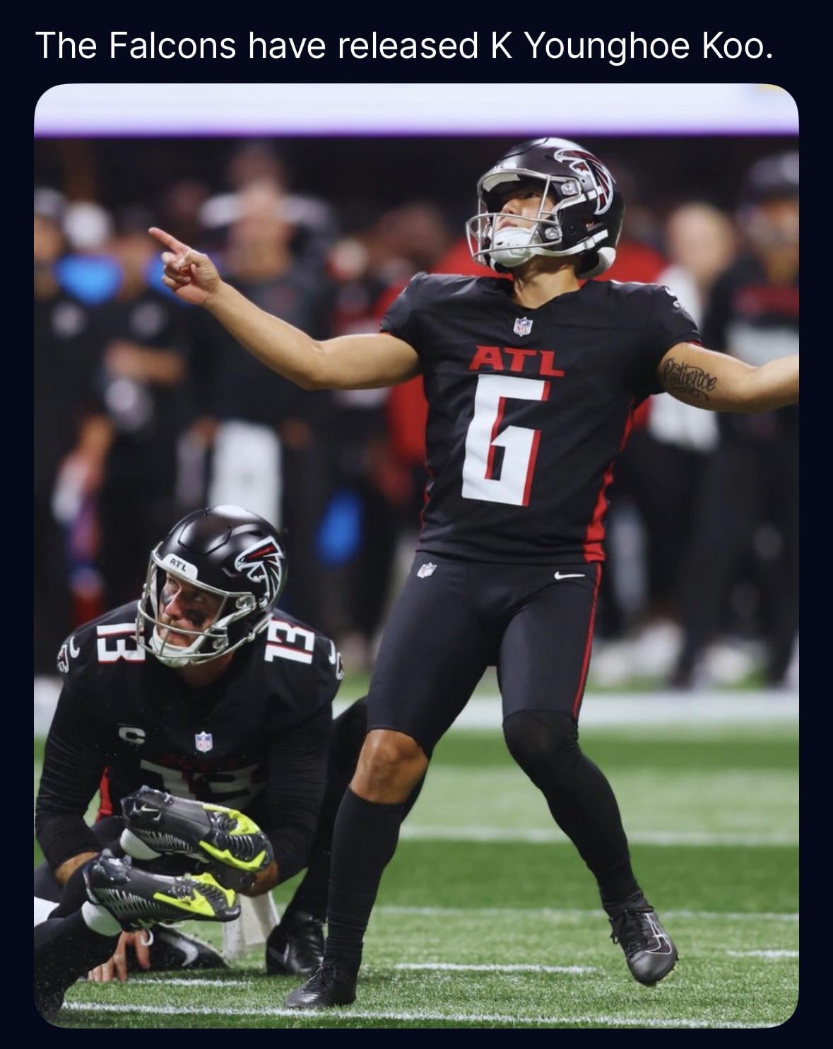2. The Falcons are clearly following my fantasy team moves. Sorry Koo. I never meant for it to be this bad.