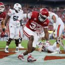 Oklahoma’s Isaiah Sategna appeared to feign a substitution before streaking down the sideline uncovered for a 24-yard touchdown reception Saturday. The SEC said officials “did not properly interpret the action as a hideout tactic.” Kevin Jairaj-Imagn Images