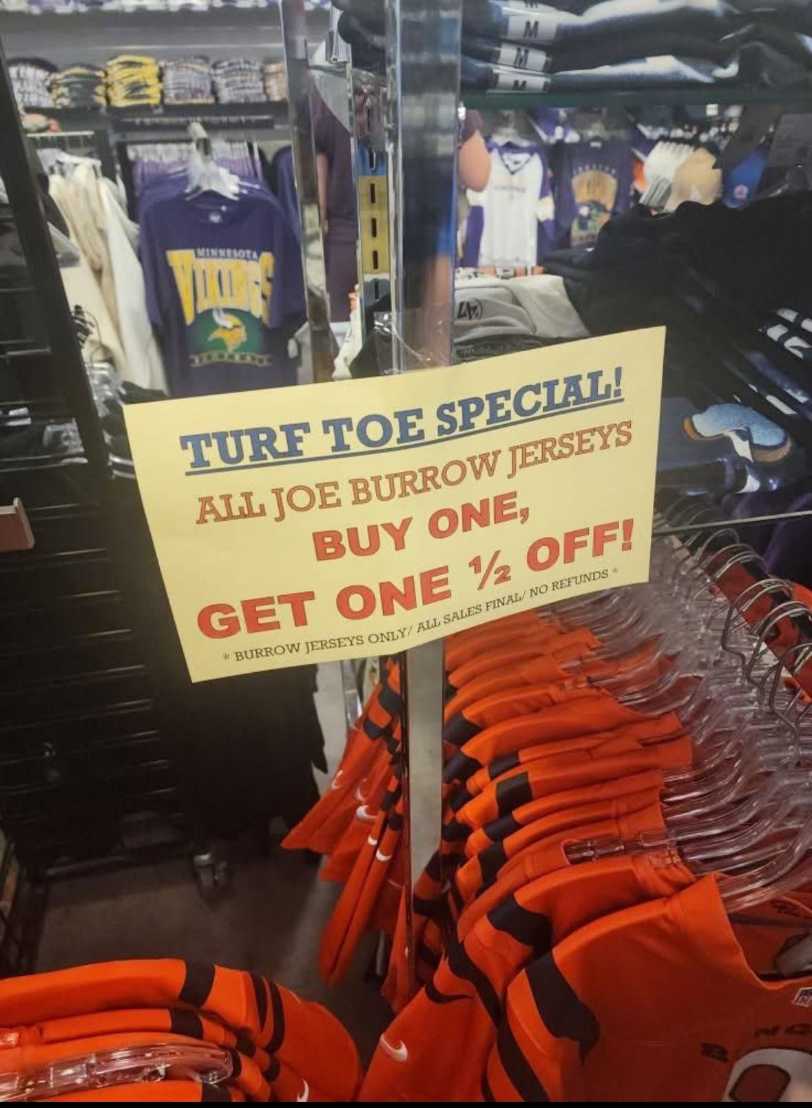 I saw this today in person, thought it was funny. The store had all their Bengals gear pushed to the front too, thought that was smart.