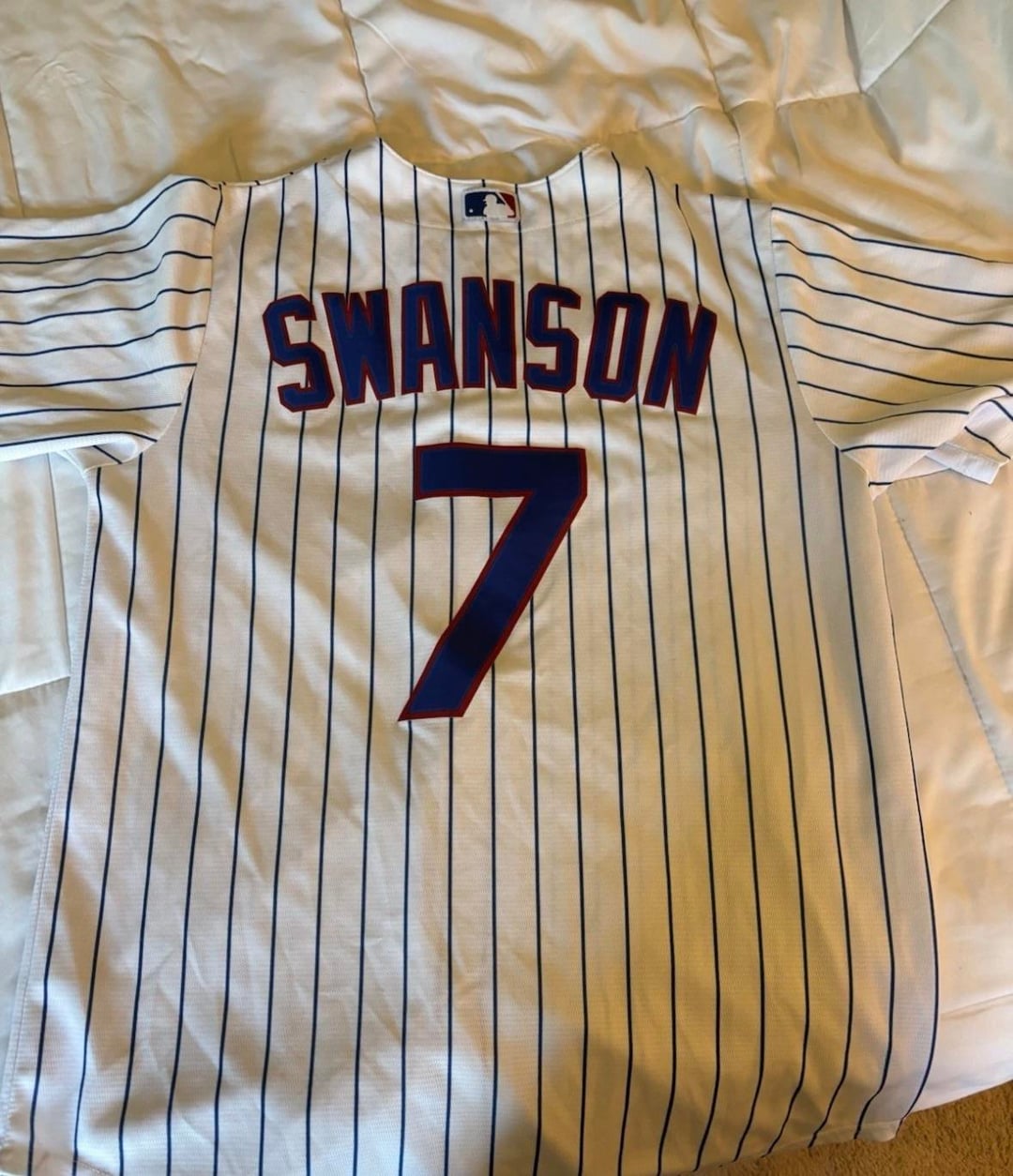 I prefer the white pinstripes on the actual players but the blues for a jersey I’m going to buy for myself. They are much more forgiving to game day mustard stains than the whites lol