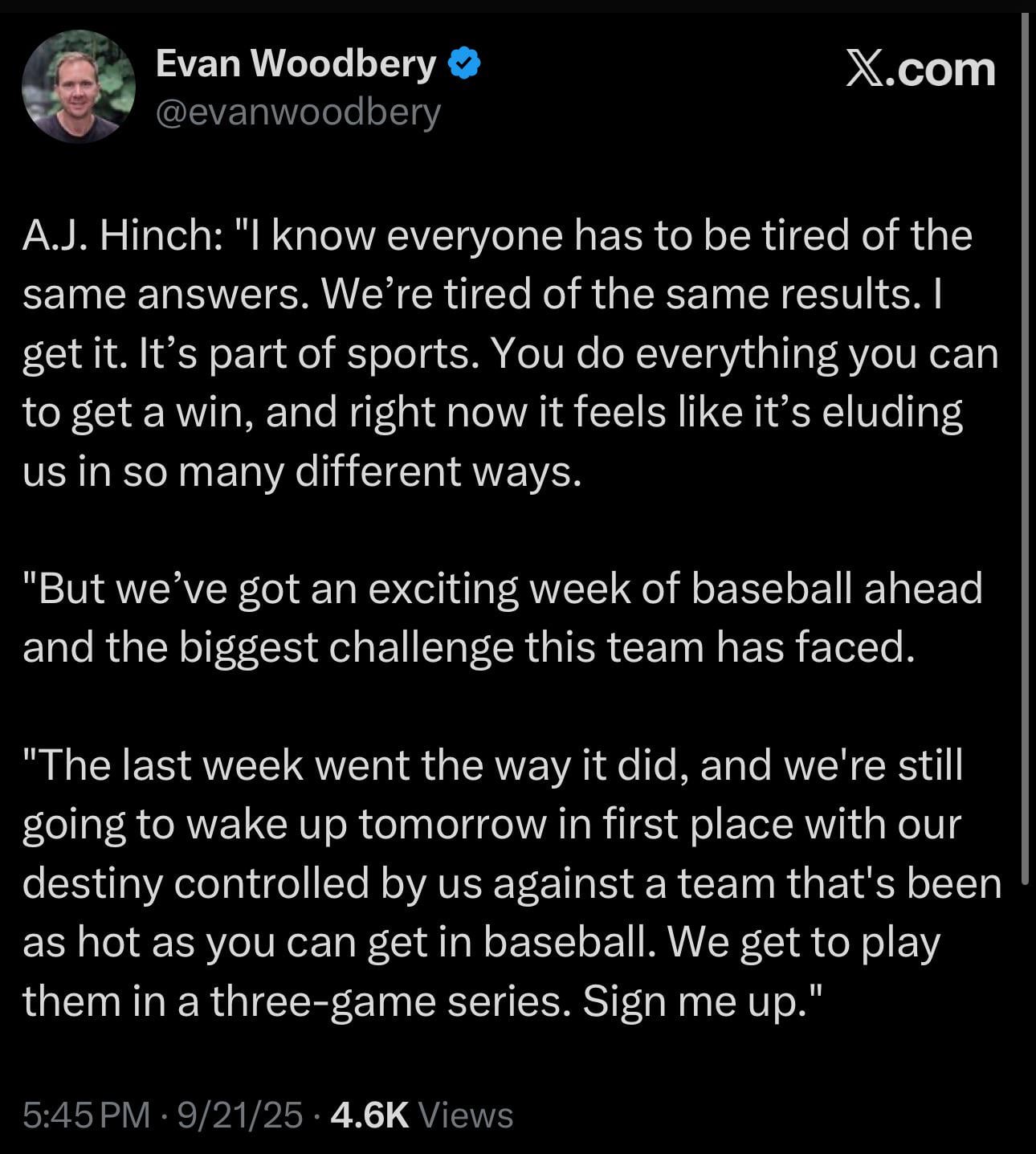 I don’t care if we get swept in the wildcard, just beat this fucking team PLEASE. Just crush their dreams and prepare for next season with an actually healthy rotation and (hopefully) a couple new bullpen arms
