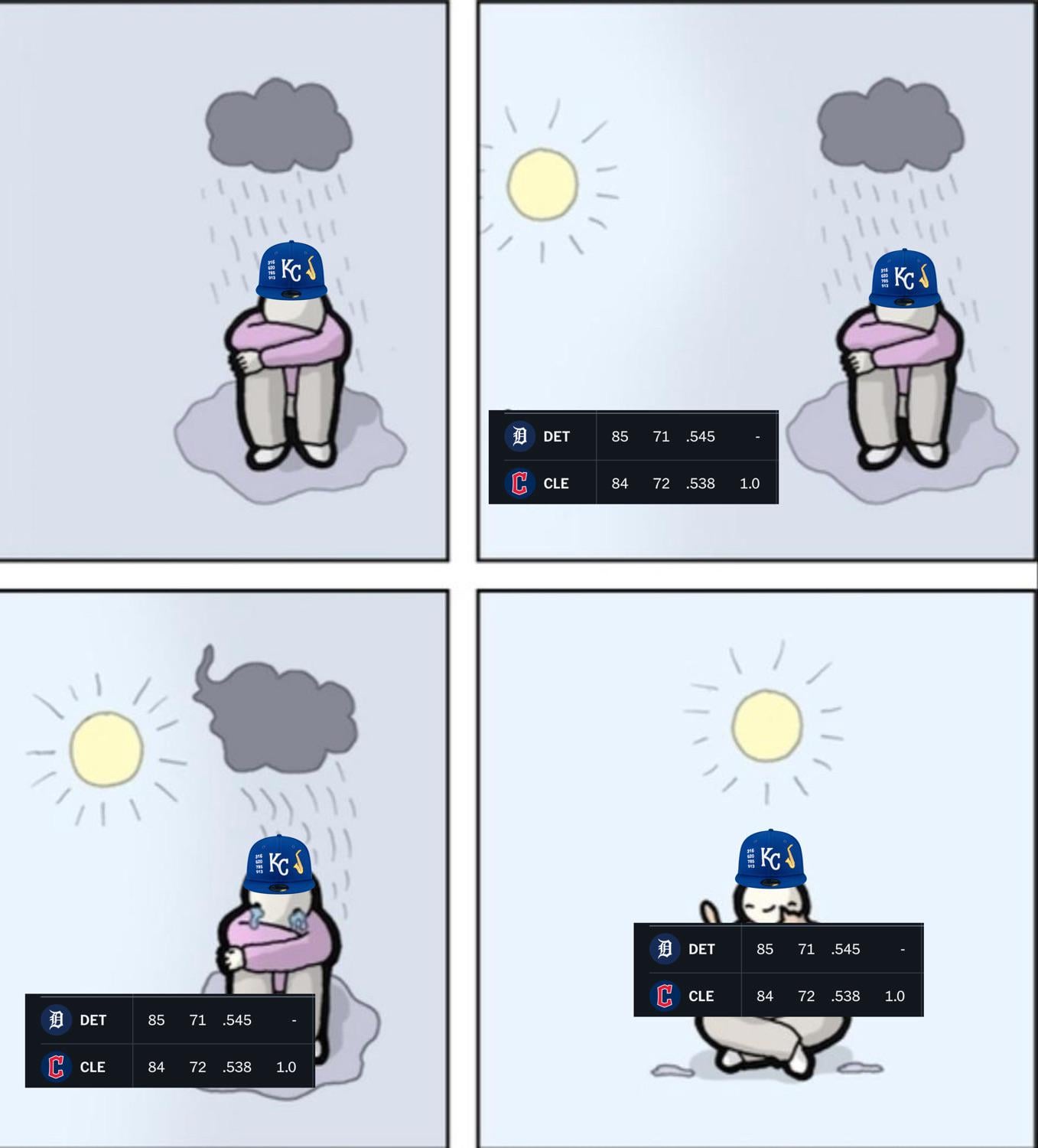 This is almost identical to last year only Detroit and Cleveland have switched positions and Detroit ran out of time to overtake Cleveland last year. Also, Cleveland didn’t full on collapse like Detroit is doing this year. Should be interesting to watch.