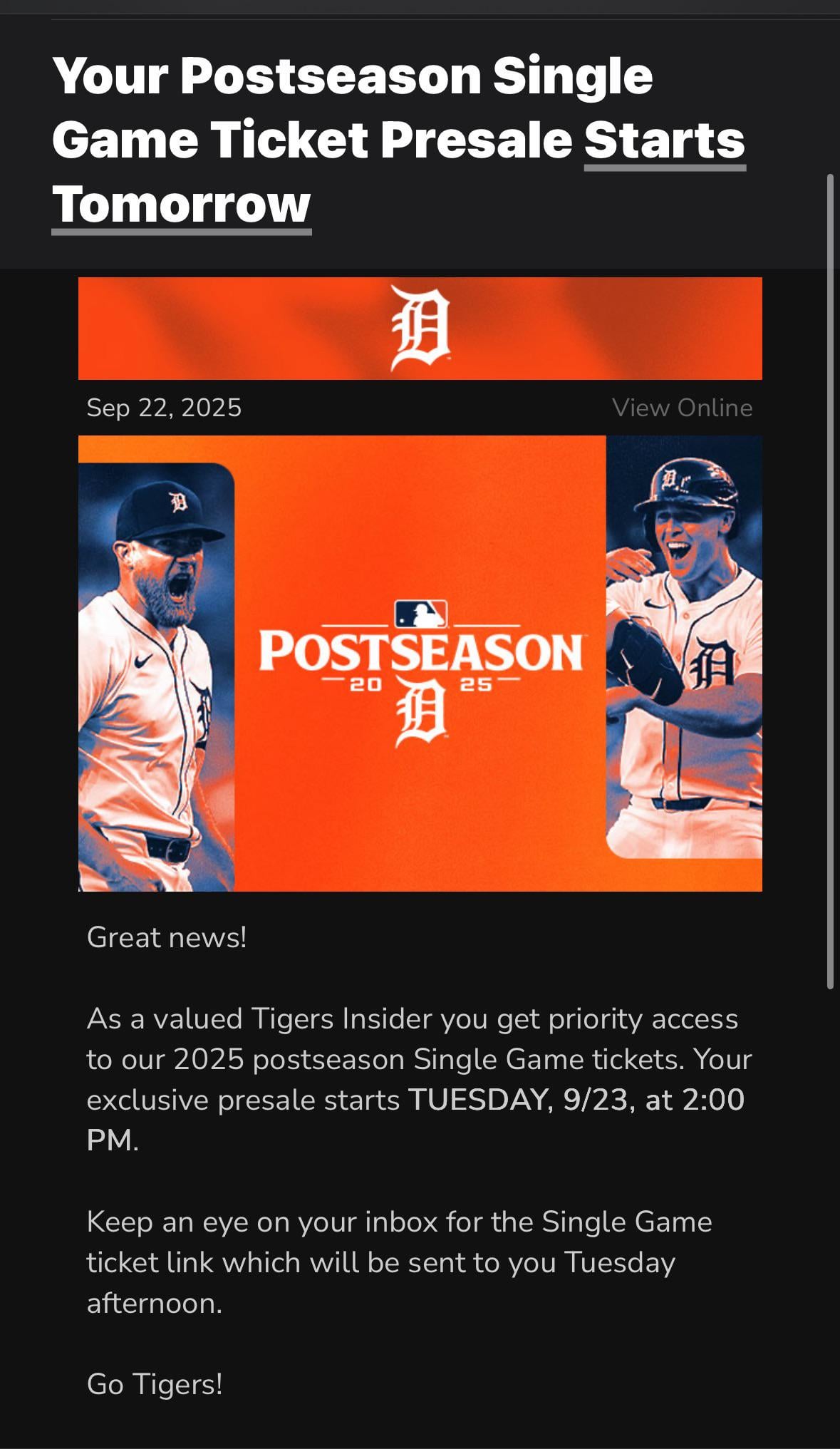 I got this today, I have season tickets and they go on sale Tuesday @ 10am and 12pm for public or ‘loyal’ fans apparently