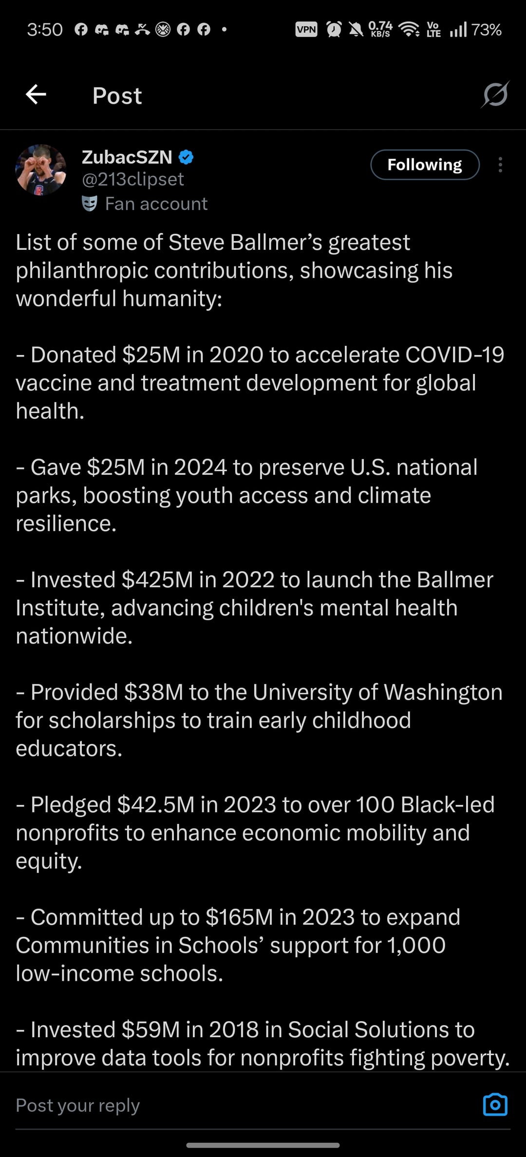 People want to trash Balmer as some shady, rich billionaire on the current defamation story by a nobody podcaster. But just a reminder what he has done for the community.