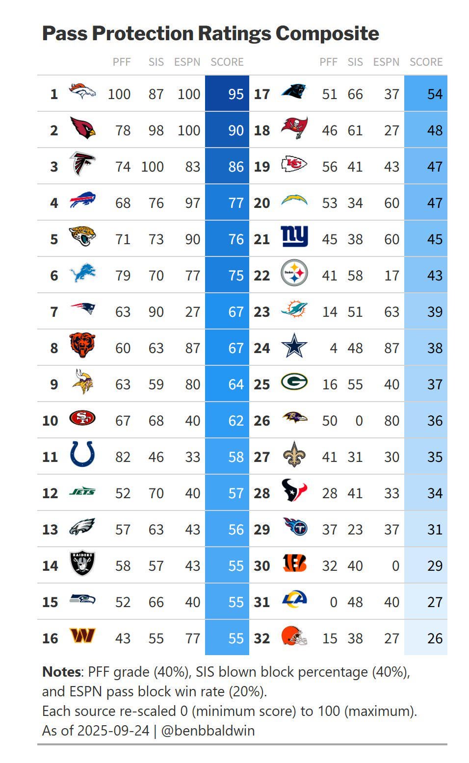 8. I appreciate the guy who made the chart averaging together the various OL raters, because otherwise I’m not sure how to interpret “Dallas is either absolute dog shit or one of the best in the league” lol. Probably somewhere in the middle!