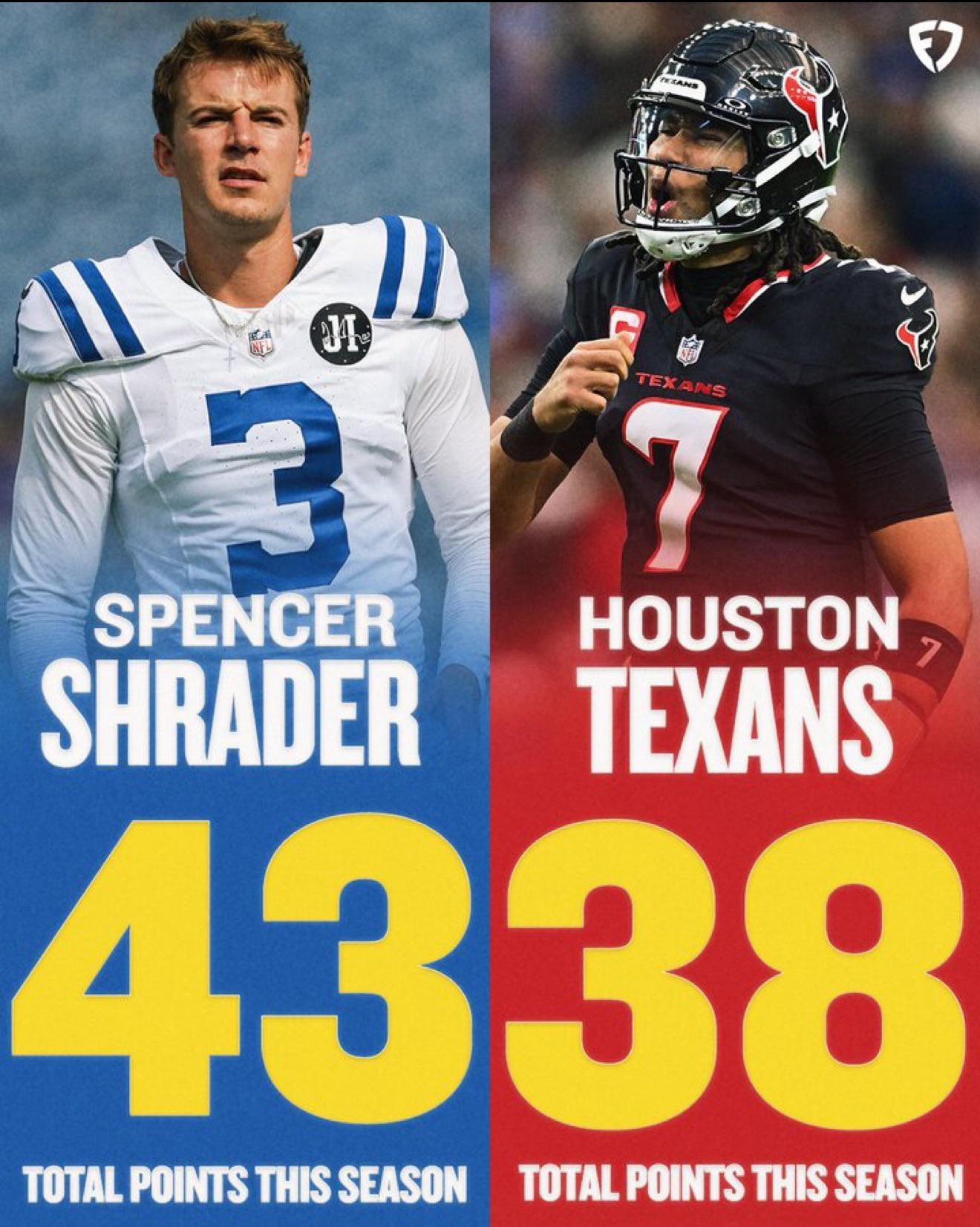 Spencer Shrader > Texans 10 comments That’s my fantasy kicker! Let’s gooooooo This is what we like to see. This just means we’ve kicked too many FGs. Need to punch those in The stats just keep coming! This might be my favorite one. That is quite a stat. ASAC Shrader I read the title and thought he got traded LMFAO now this is a hilarious stat, especially being the Texans! Nice!!! We would really be rolling if we converted a chunk of those fieldgoals into TDs Leave a ReplyYou must be logged in to post a comment.