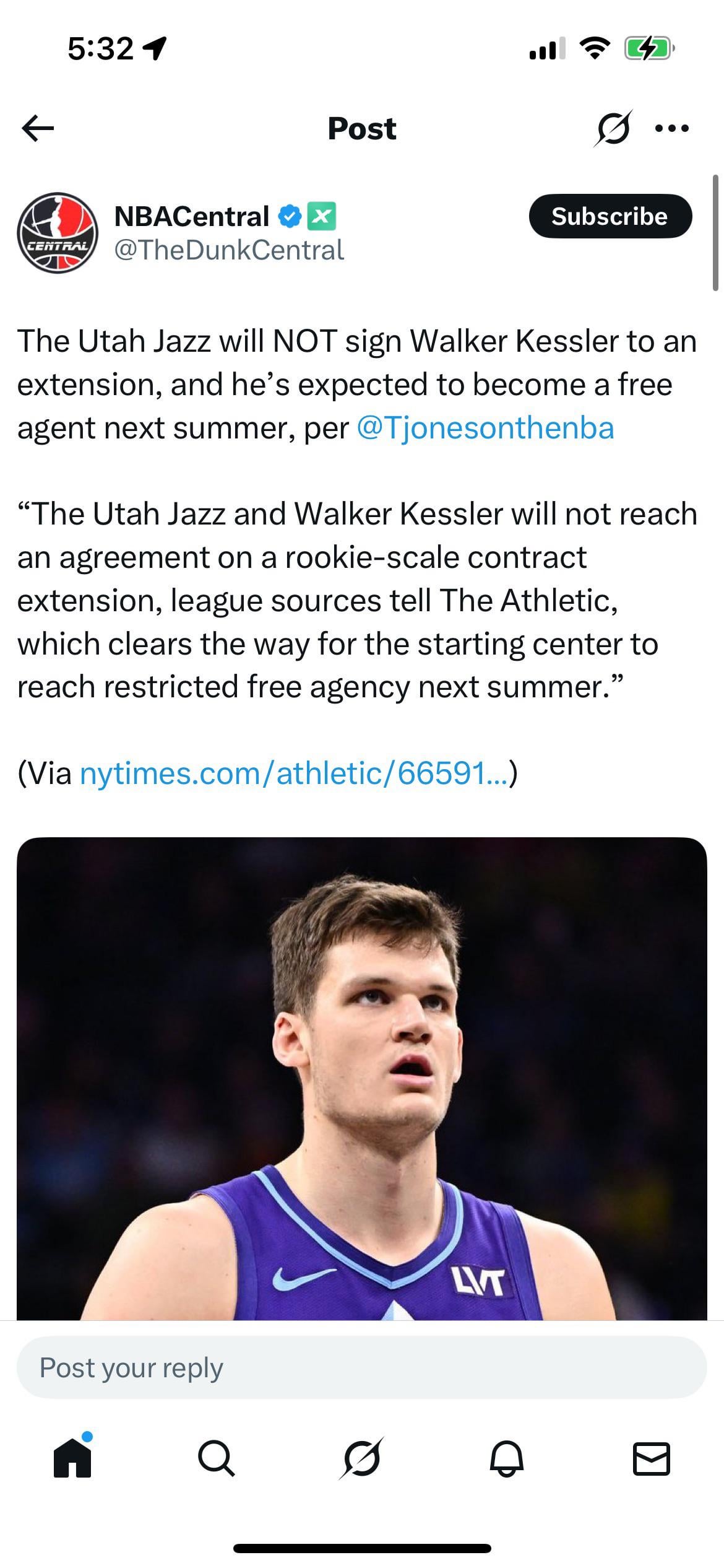 2. No shot Utah has any intention of letting him leave. Either this is an attempt to get a cheaper extension through RFA or they and Kessler have an agreement to sign an extension next year so they have more cap space to make a move in free agency