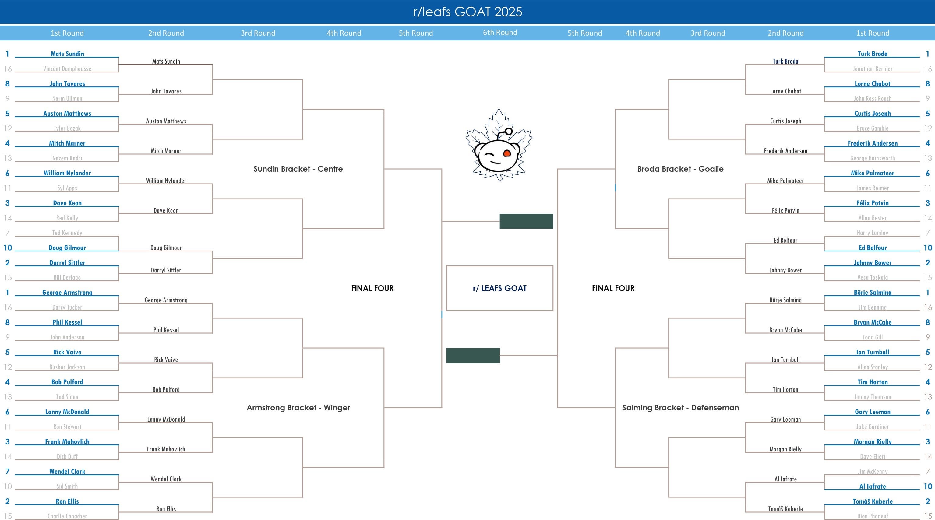- each bracket is ranked by total points scored in a Maples Leafs uniform