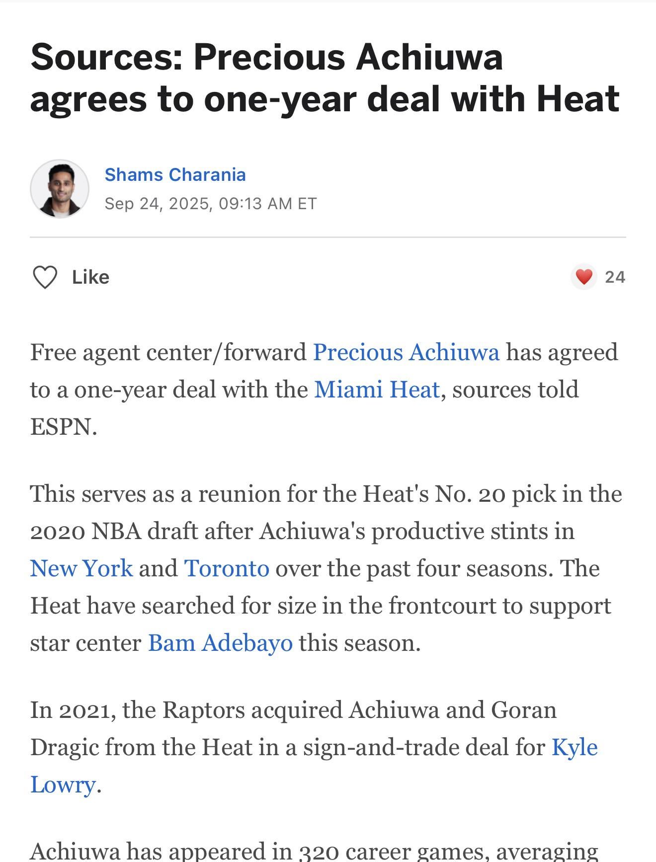 7. Pretty much the exact 1:1 Haywood Highsmith replacement. Younger but doesn’t bring the consistent shooting.