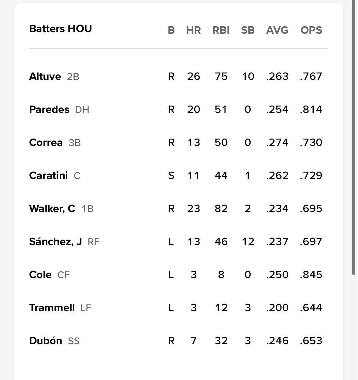 Framber on the mound and we have Sanchez in right? Alright guys we’re not serious. Framber will cry like a bitch after the 1st inning.