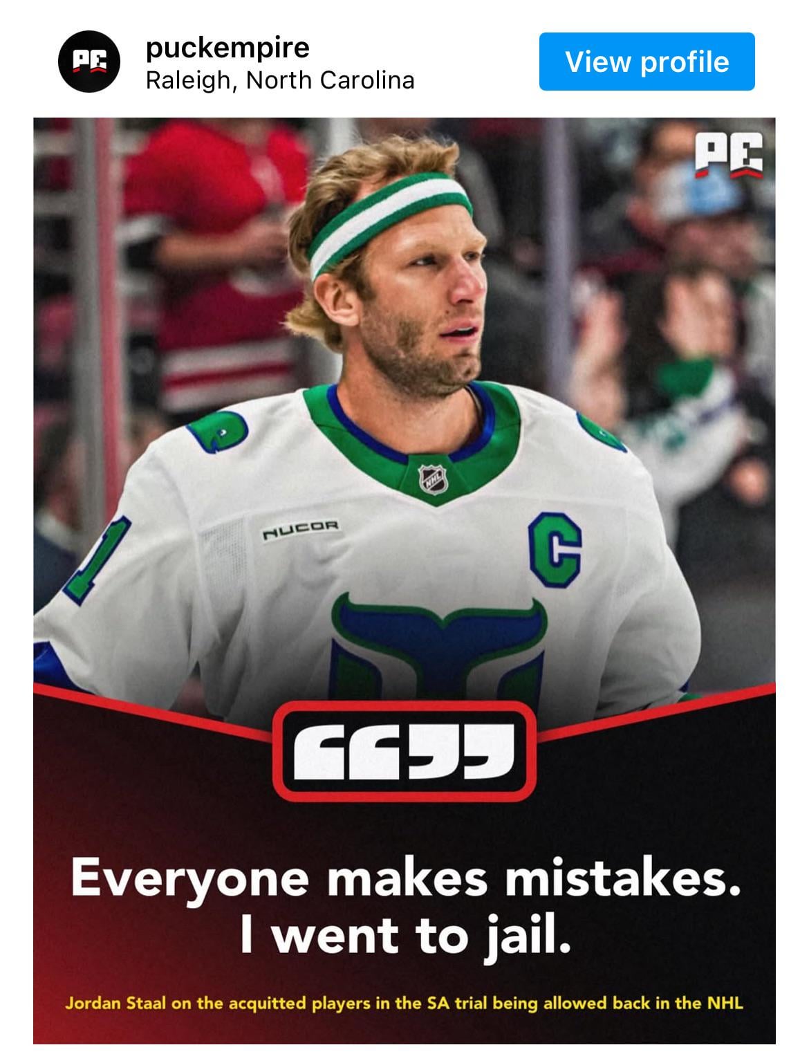 “Everyone makes mistakes, including myself,” Staal said. “As an 18-year-old kid, I’ve done some stupid stuff. I went to jail. I had to go through a lot of crap because of it, and it wasn’t fun. I had to go through some crappy times, but I owned it.” “Media guys all want a little piece of them, and everyone wants to write their own little snippet and not miss out on the juicy stuff,” he said. “That’s part of making mistakes, too.” – Jordan Staal per Mark Lazarus of The Athletic