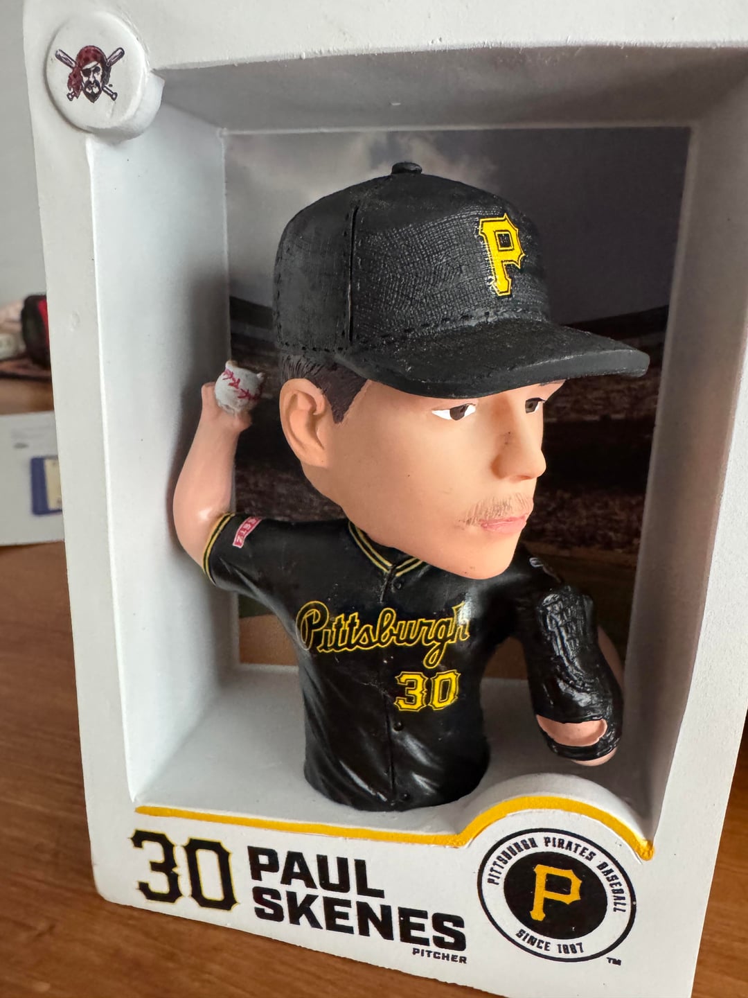 Guardians fan here. Came to a skenes bobblehead night back in April when Cleveland was in town. Incredible park, great city, awesome fans. Love Pittsburgh. We ended up getting mailed the bobbleheads and they came a few weeks ago. Why is the mustache reduced to a stubble? It’s featured on the box but not the bob itself… What’s goin on here pirates? Barely looks like him