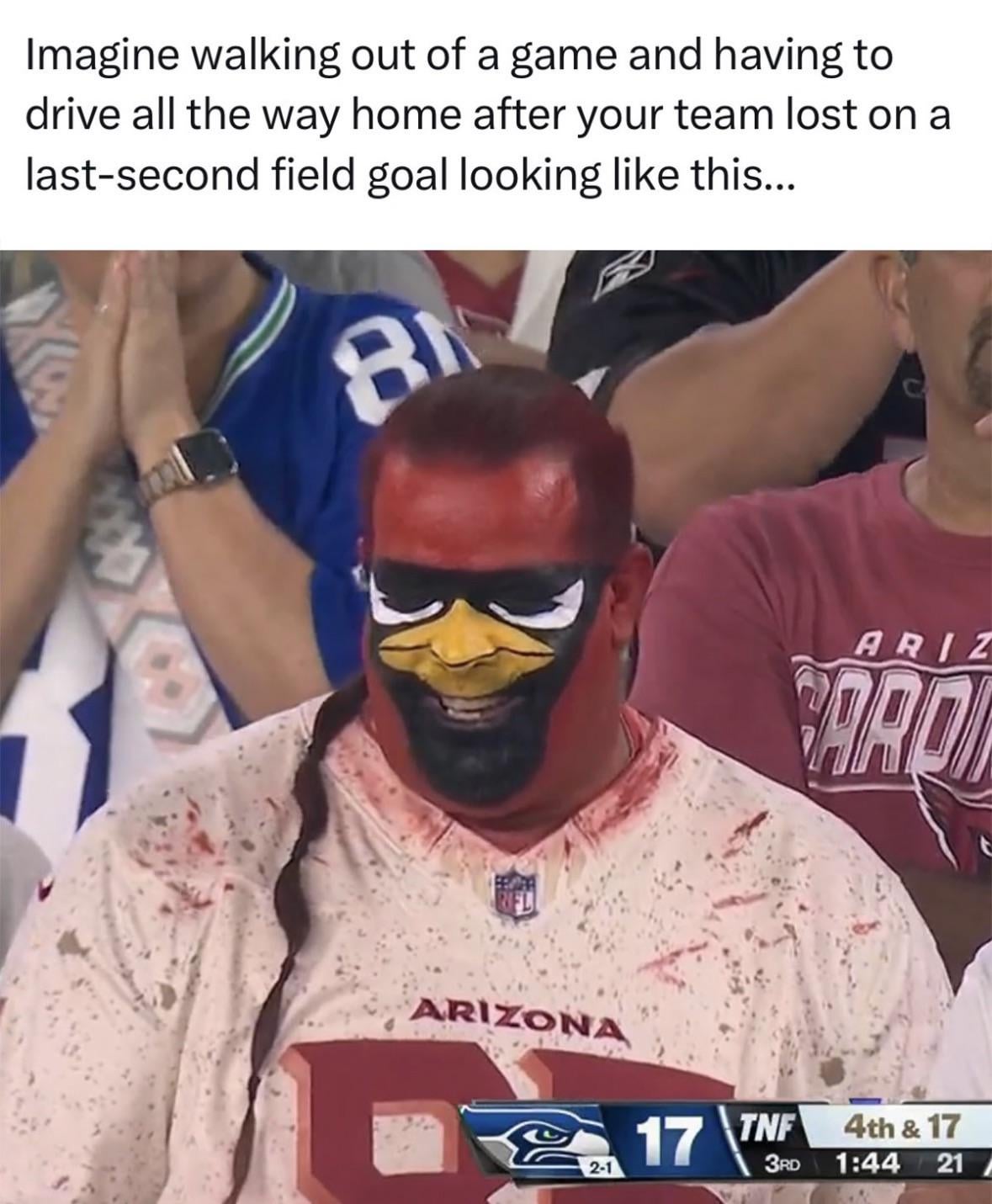 Last thing I want is every crowd to look like the Super Bowl crowd. Dedicated, unhinged fans like this guy are what it’s all about.