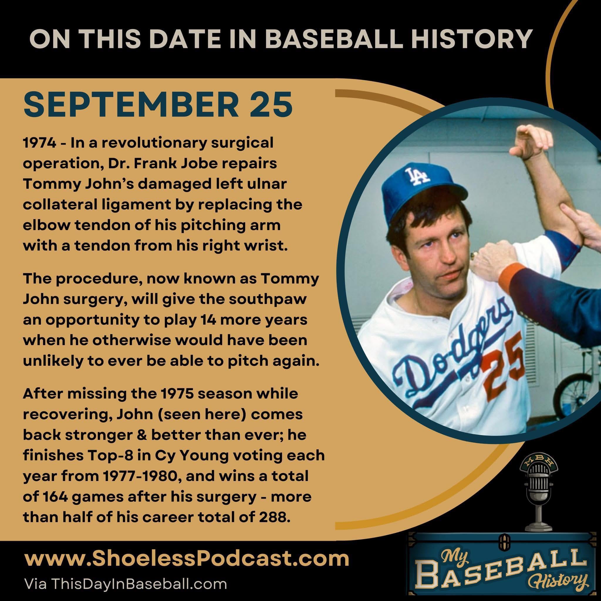 Tommy John Surgery. Dr. Frank Jobe his surgeon could easily have used his own name to publish the results of the groundbreaking technique. But he was a generous man and eventually the first patient ever (TJ) became the name we all know. John and Jobe remained friends until the good doctors death.