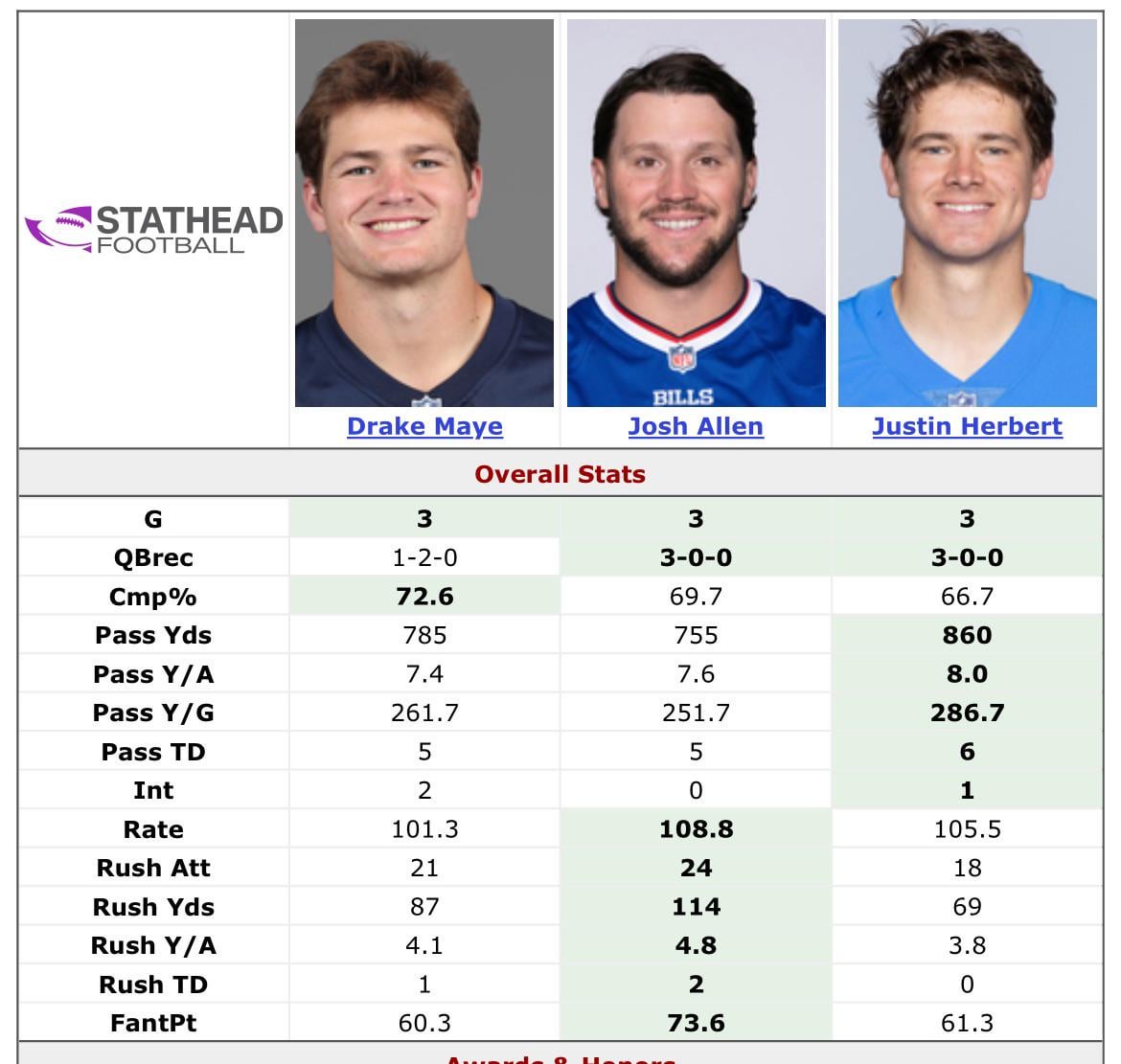 Maye looks good, and his stats are fine from a starter perspective; we’re just not winning, and he’s not throwing 400/5 per game.