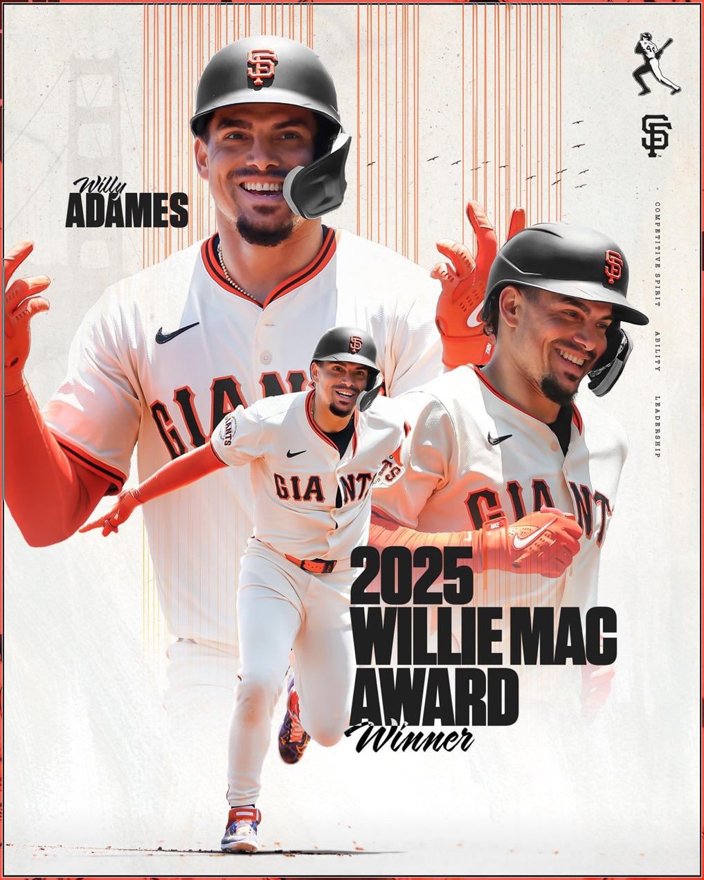 Willy Adames wins the 2025 Willie Mac Award (🖼️ @SFGiants) 7 comments  He was basically guaranteed to win the award from day one. He brings a different type of energy to the team that never fails to disappoint. Some will say its rigged because Willie = Willy  Well deserved. He’s such a great team mate. Always ready with the Gatorade for the post game interviews. So happy he’s a SF Giant. Sweet! I voted for him. I’m so glad Willie won!! Leave a ReplyYou must be logged in to post a comment.